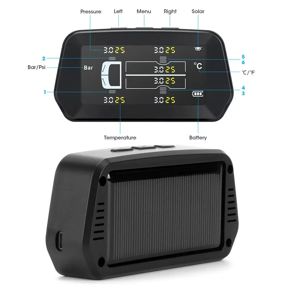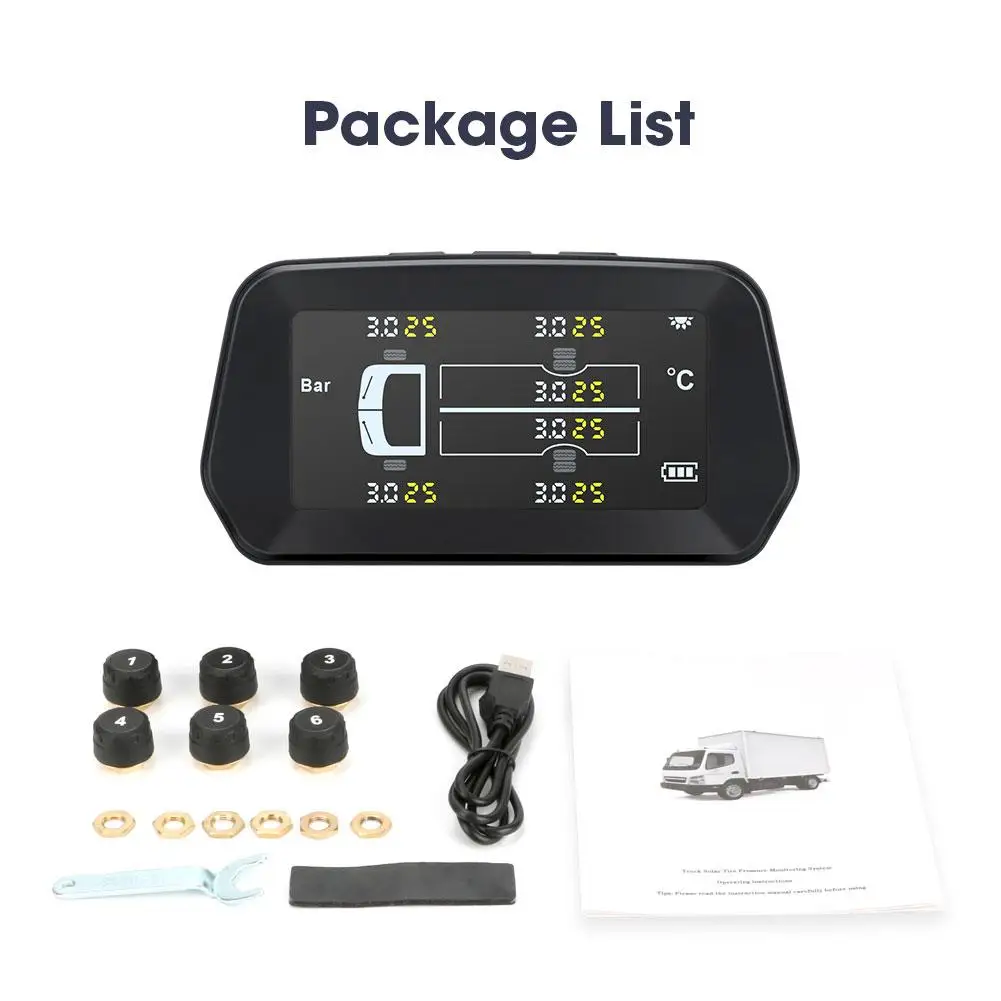 Описание:1. Надежный и простой в установке.2. Контроля давления в шинах датчик диапазона значение: 0-8bar ± 0,1 (около 0-116 фунтов на квадратный дюйм)3. Встроенная перезаряжаемая литиевая батарея4. Внешние датчики, специальная конструкция, может поддерживать 6 шин5. Цикл отображения показывает 6 давления и температуры в шинах6. Можно заряжать через солнечный или USB кабель7. Когда давление и температура в шинах превышают Установочное значение, датчик давления в шинах оснащен звуковым сигналом и всплеском.8. PSI, бар два вида выбора блока давления, °C и °F два вида выбора блока температуры.9. Каждый датчик имеет независимый идентификационный код. Его можно использовать непосредственно перед отправкой с завода. Не требует динамического балансирования. Это экономит время и затраты.10. Импортированная батарея, долговечная мощность, более точные данные мониторинга, мониторинг безопасности шин в реальном времени.11. Когда шина нормальная, датчик обновит данные каждые 5 минут. Когда давление и температура в шинах являются ненормальными, звуковой сигнал и всплеск экрана будут выпущены в течение 3 секунд.12. Мониторинг давления в шинах в режиме реального времени, балансировка давления в шинах, снижение износа шин, экономия топлива, увеличение срока службы шин, улучшение стабильности транспортного средства и предотвращение дорожных аварий.13. Специальный 6-колесный датчик для грузовых автомобилей, контроля давления в шинах значение до 12.0bar14. Мониторинг состояния шин в режиме реального времени, когда давление и температура в шинах слишком высокие или низкие, дисплей излучает звуковой сигнал и отображает значение давления и температуры в шинах в реальном времени15. При запуске транспортного средства дисплей автоматически начнет защищать безопасность вождения во все времена.16. Поддержка солнечной/USB двух методов зарядки17. Металлический датчик, качество гарантированоПреимущество:1. Большой экран2. Медный сердечник, не легко упасть3. Длительное время работы в режиме ожиданияИнтеллигентая (ый) Вкл/ВыклКогда автомобиль запускается, вибрация машины автоматически открывается, и машина автоматически отключается, когда она находится на месте, без ручного управления.ОРВ, пикап, минивэн, Р. В., миниавтобусIPX7 водонепроницаемые датчики, пыленепроницаемые, не легко отвалятсяПараметры:Материал: АБС-пластик + ПоликарбонатЦвет: черныйРежим отображения: цветной экран LDCТип установки датчика: внешний датчикДиапазон контроля температуры: -40 ℃ ~ 130 ℃Диапазон контроля давления воздуха: 0.1bar ~ 12.0barТочность температуры: ± 3 ℃Точность давления воздуха: ± 0,1 барРабочая частота: 433,92 МГц ± 20,00 МГцДисплей Напряжение: 3,7-5VОтображение статического тока: менее или равен 0,7маОтображение рабочего тока: менее 13,0 мАРабочая температура дисплея: -20 ℃ ~ 80 ℃Размер дисплея: около 107*56*26 мм/4,21*2,20 * 1.02inСенсор напряжение: 2,0-3,6 VРабочая температура датчика: -20 ℃ ~ 85 ℃Функция: контроль давления в шинах/температурыПрименимые модели: УниверсальныйПодходящие Автомобили: для автомобилей с 6 колесамиУпаковочный лист:1 * Дисплей6 * датчик для грузовиков1 * USB кабель для зарядки1 * маленькая установочная посылка 1 * Инструкция