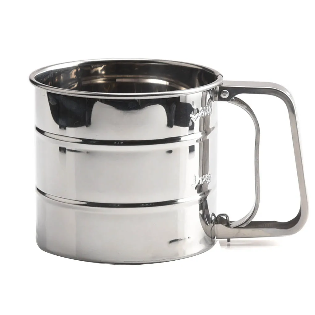 Сито для муки в форме чашки можно просеивать и смешивать, делая торт удобным, простым в использовании, и не будет растрачивать роль, пока ручка аккуратно разминается, порошок легко Просеивается.
