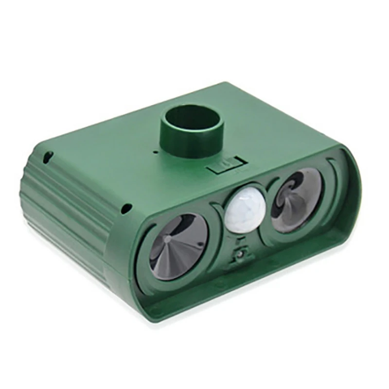 2. Потому что продукт является портативным дизайном, который может быть установлен в вашем домашнем саду, во дворе или в любом месте. Этот продукт может быть только батареей низкого напряжения. Этот продукт предназначен для вождения животных. Гарантия на химические вещества отсутствует. Только Ультразвуковая частота 25 кГц выдается, чтобы толкать их. Посылка не наносит вреда человеческому телу.