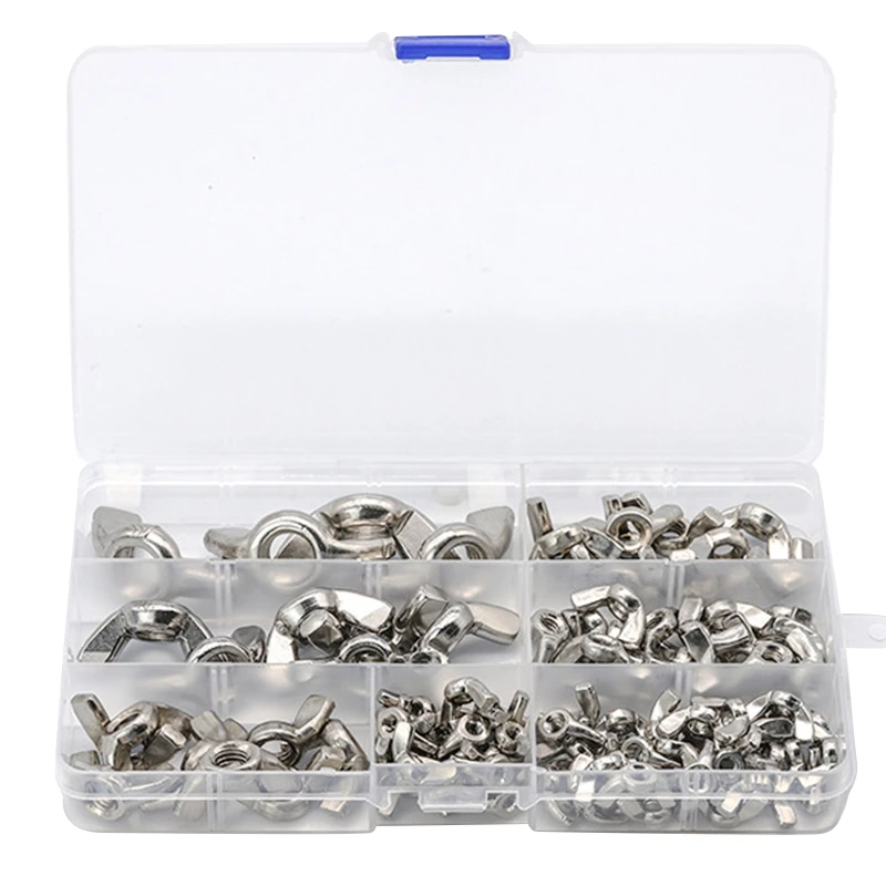 [Гайки крыла Ассорти]: гайка крыла или гайка бабочки-это тип гайки с двумя большими металлическими «крыльями», по одному с каждой стороны, поэтому его можно легко затянуть и расшатать вручную без инструментов.