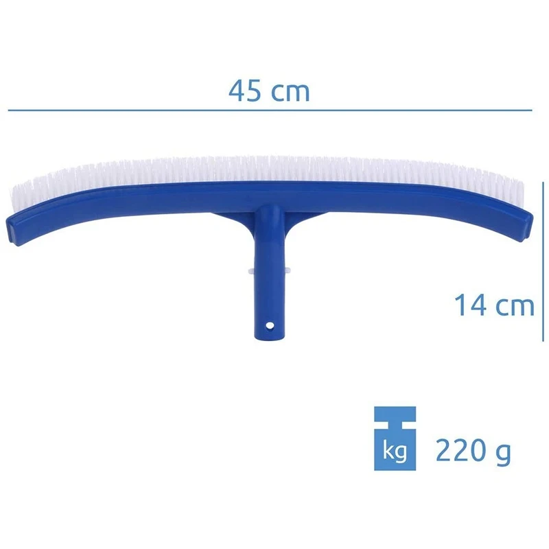 Также в комплект входит щетка для бассейна шириной 45 см для очистки стен бассейна и пола бассейна, а также поплавок для дозирования больших таблеток хлора