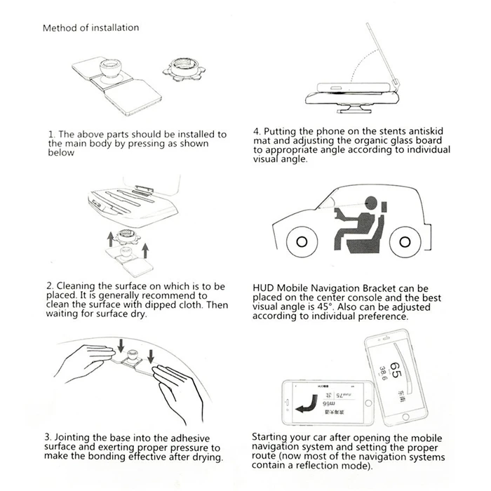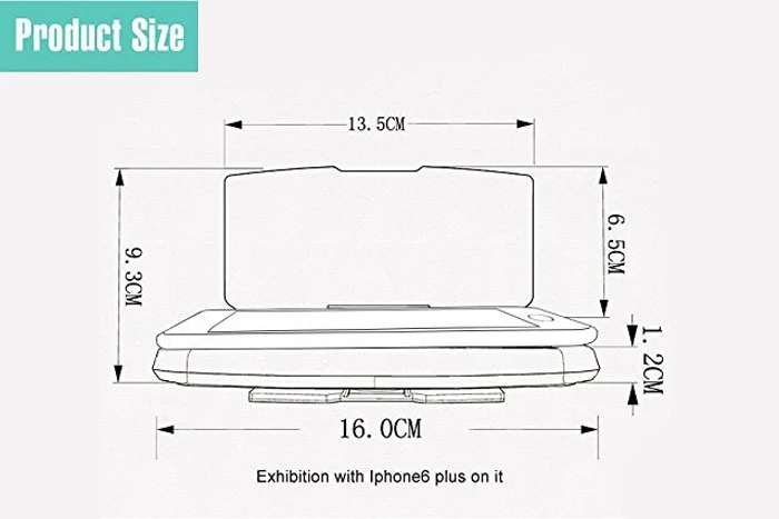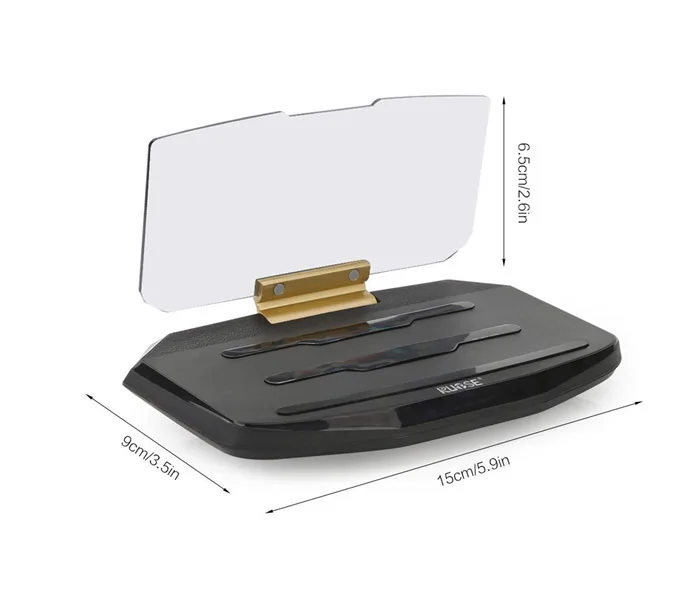 Характеристики: Материал: АБС-пластик + цвет отражателя: черный Размер основания: 9*15 см Размер экрана: 5,9x3,5 дюйма подходит для смартфонов Характеристики: 1. Наш продукт превращает любой смартфон в лобовой дисплей (hud). Его можно использовать с любым автомобилем, который у вас есть в настоящее время, и он будет отражать любое приложение для смартфона на базе hud. Он позиционирует нужную информацию прямо в поле зрения водителя и является самым доступным продуктом HUD на рынке. 2. На переднем дисплее отображается/отражается достаточно информации непосредственно в поле зрения водителя, что позволяет сохранять постоянную фокусировку движения без дополнительного отвлечения внимания. Кроме того, вам не нужен дополнительный GPS-блок из-за поворотных навигационных функций современных приложений для смартфонов. Он будет четко отражать любое изображение приложения (GPS-навигация) на основе HUD или видео YouTube перед вашими глазами, что позволит вам четко видеть навигационные инструкции, не опуская голову. 3. У вас нет необходимости в дополнительном противоскользящем коврике, автомобильном креплении или Магнитном Держателе для телефона на вентиляционную решетку. Наш HUD удерживает ваш телефон и предотвращает соскальзывание телефона с приборной панели. Может использоваться с различными смартфонами для iPhone 4 5 6 7, для Samsung, для Sony, для HTC, для LG и т. д. 4. На лобовом дисплее отображается нужная вам информация, которая вам нужна для того, чтобы сосредоточиться на вождении. Это может включать в себя все от текущей скорости, GPS-навигации до пересчета двигателя и даже различные датчики температуры. Комплектация: 1 передний дисплей 1 Отражающая пленка 1 липкая подкладка 1 руководство пользователя на английском языке