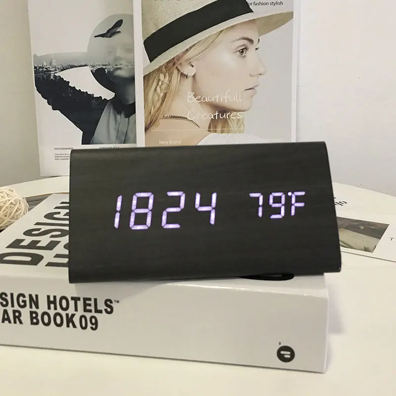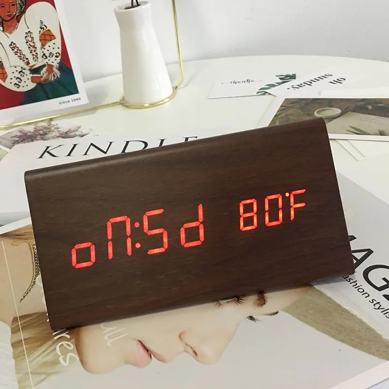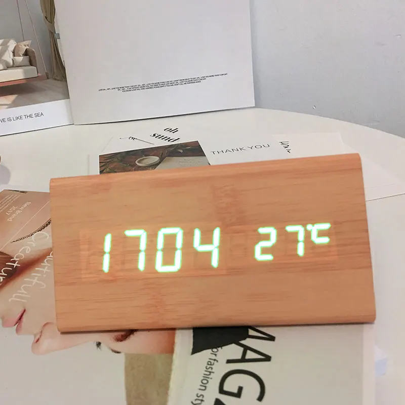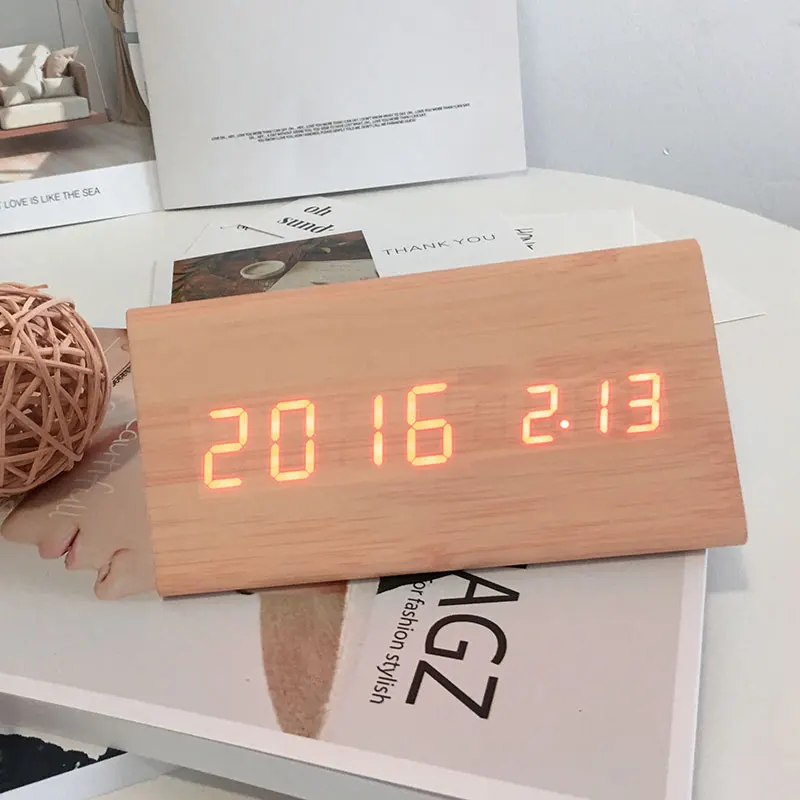 Тип: Звуковое управление, беззвучный светодиодный Электронные деревянные часы