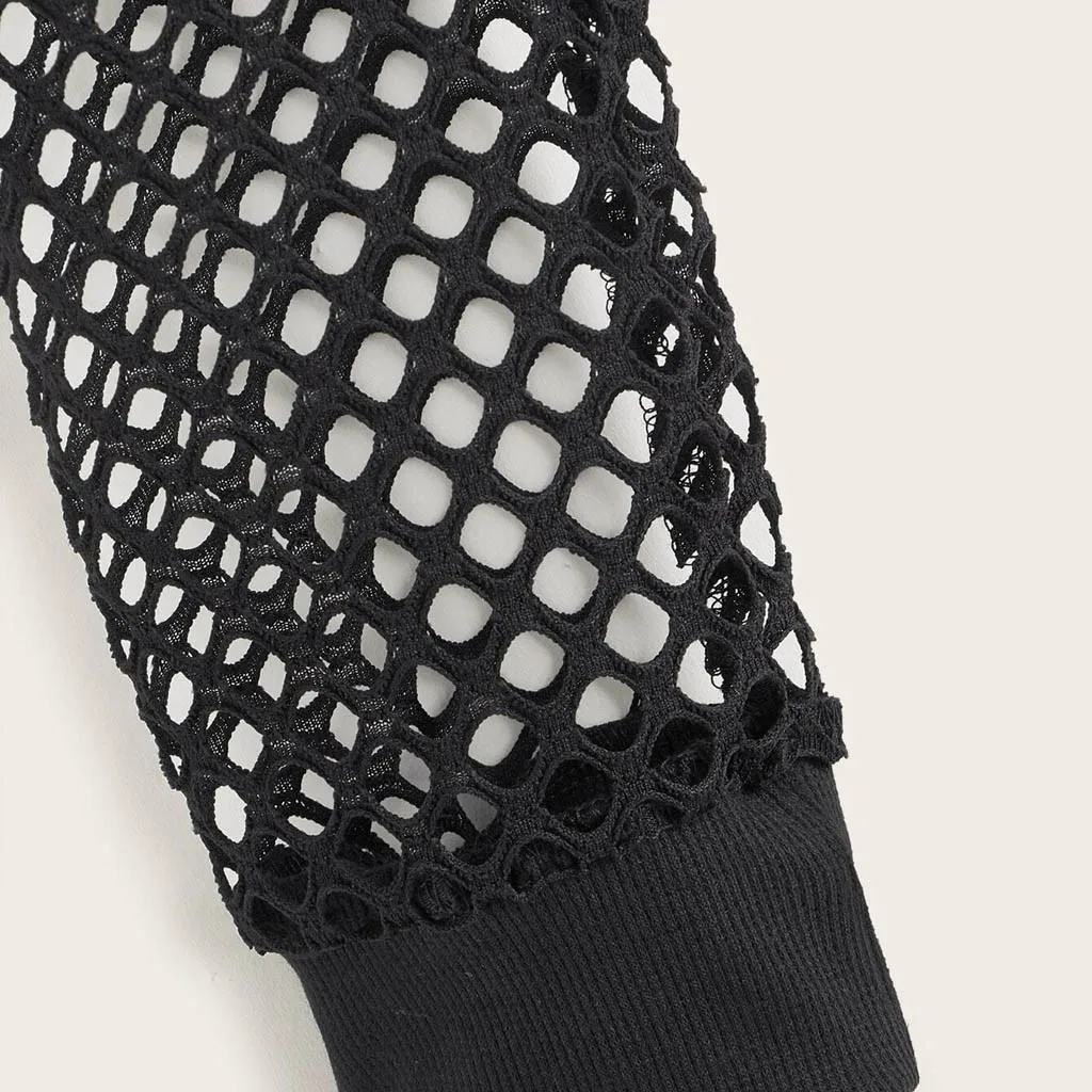 Женская однотонная укороченная толстовка с сетчатой вставкой и вырезом, укороченный Топ с длинным рукавом