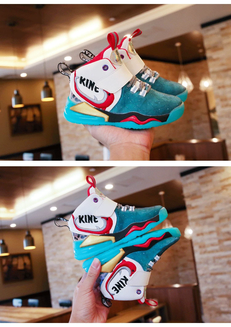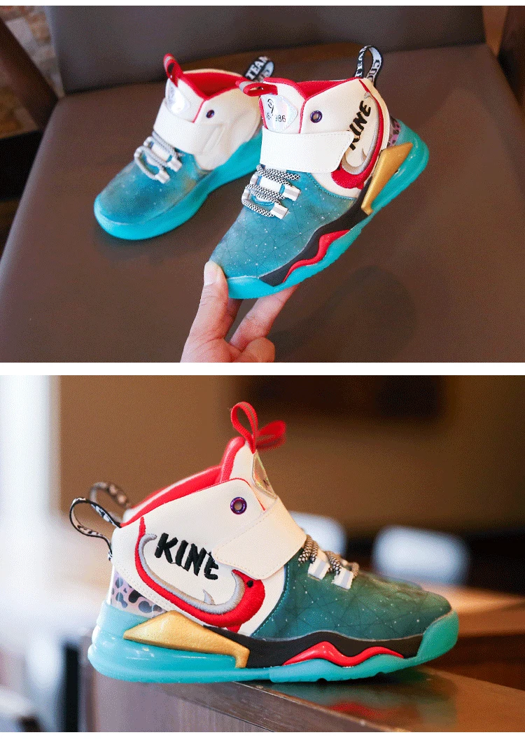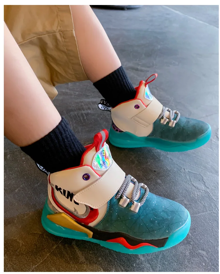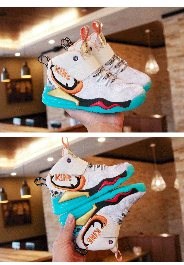 Детская спортивная обувь; Кроссовки для девочек и мальчиков; Детские кроссовки из искусственной кожи в стиле пэчворк для баскетбола; Кроссовки для бега; Повседневная обувь для девочек и мальчиковРазмер: 27-37