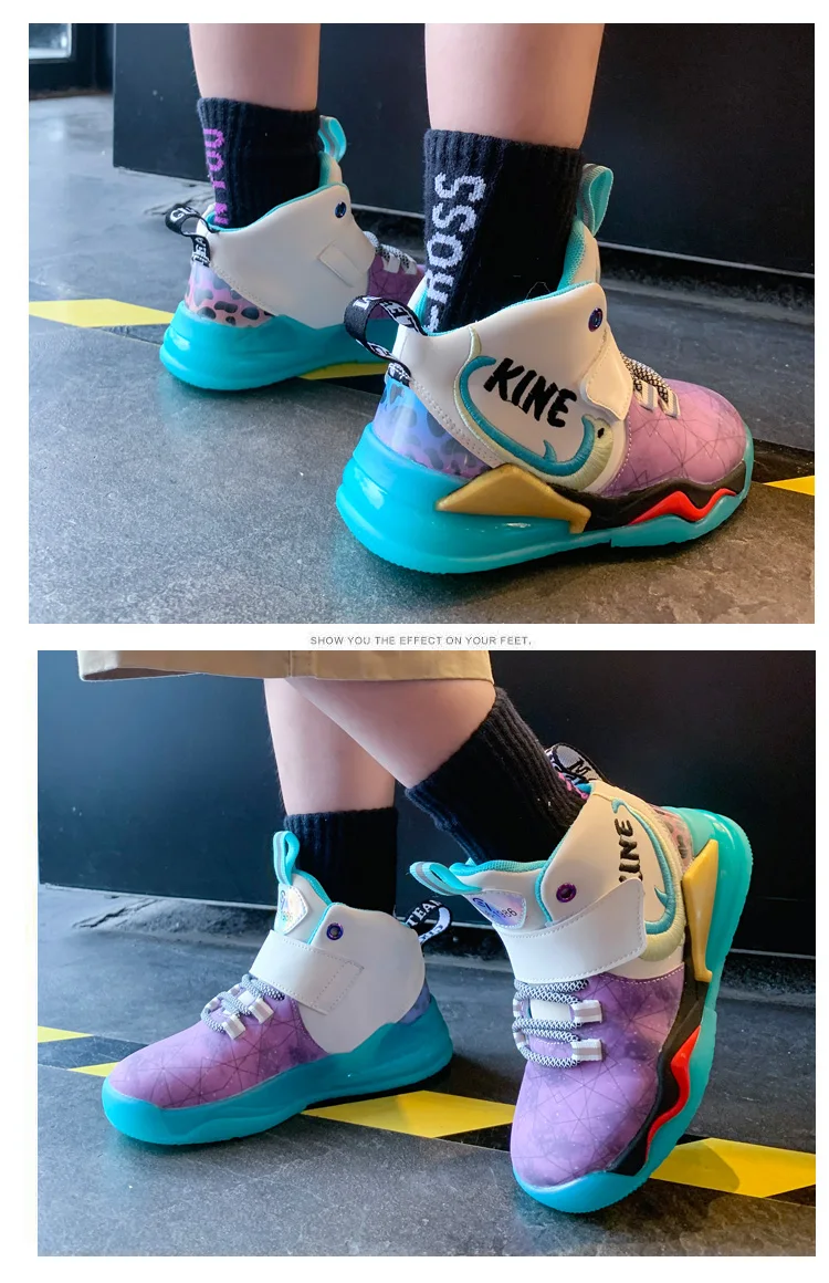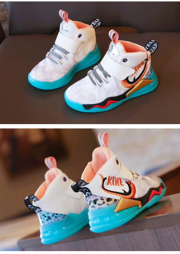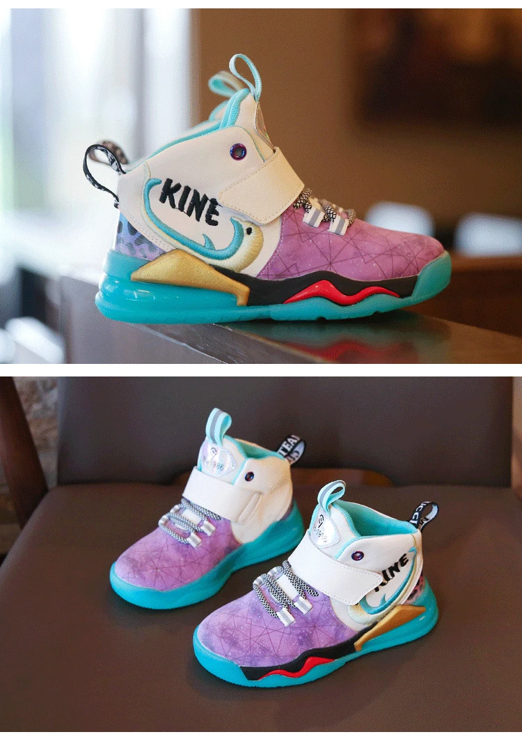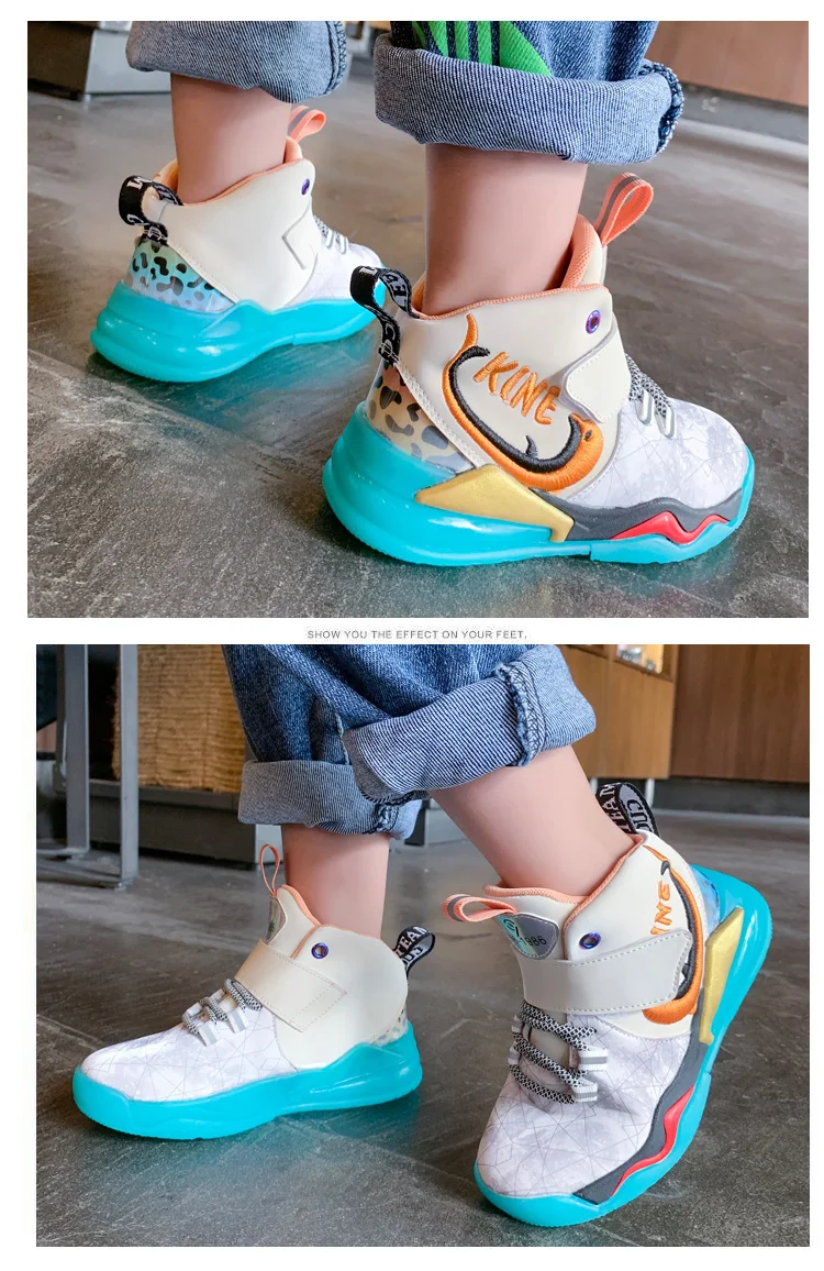 Детская спортивная обувь; Кроссовки для девочек и мальчиков; Детские кроссовки из искусственной кожи в стиле пэчворк для баскетбола; Кроссовки для бега; Повседневная обувь для девочек и мальчиковРазмер: 27-37
