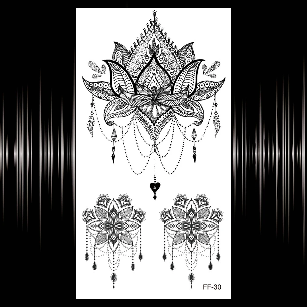 Сова черная хна временная татуировка для женщин Роза 3D перо ювелирные изделия татуировки стикер цветы кружева водонепроницаемый поддельные татуировки грудь обратно