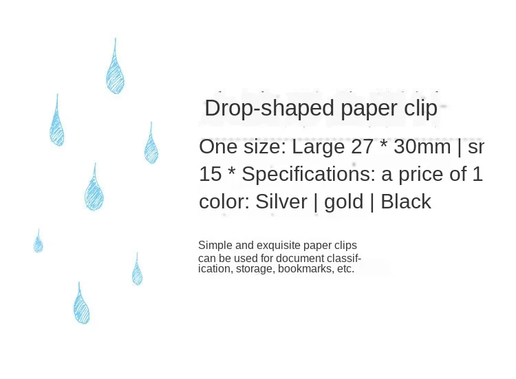 50 шт капли воды простой металлический Закладка бумажный зажим школьные офисные принадлежности ручные аксессуары для учетной записи из нержавеющей стали