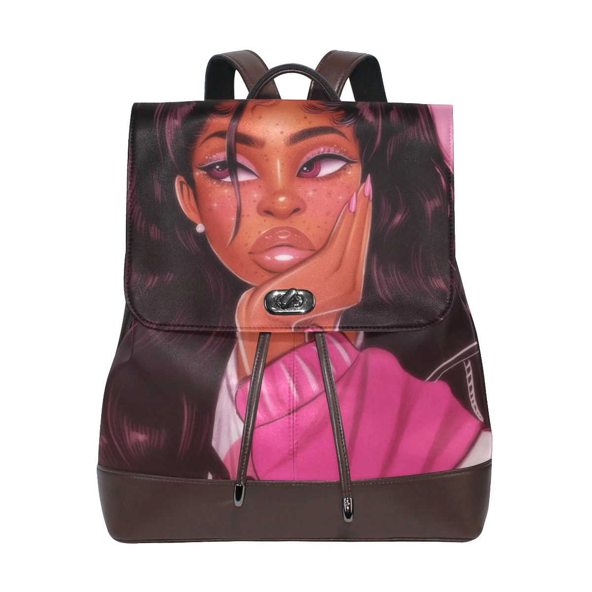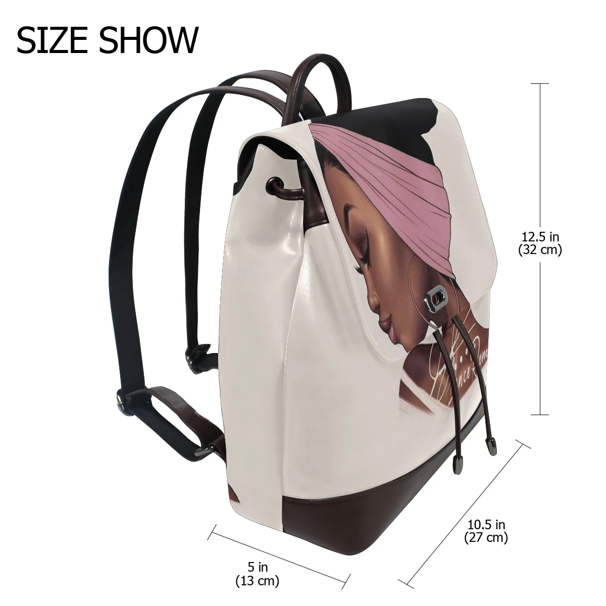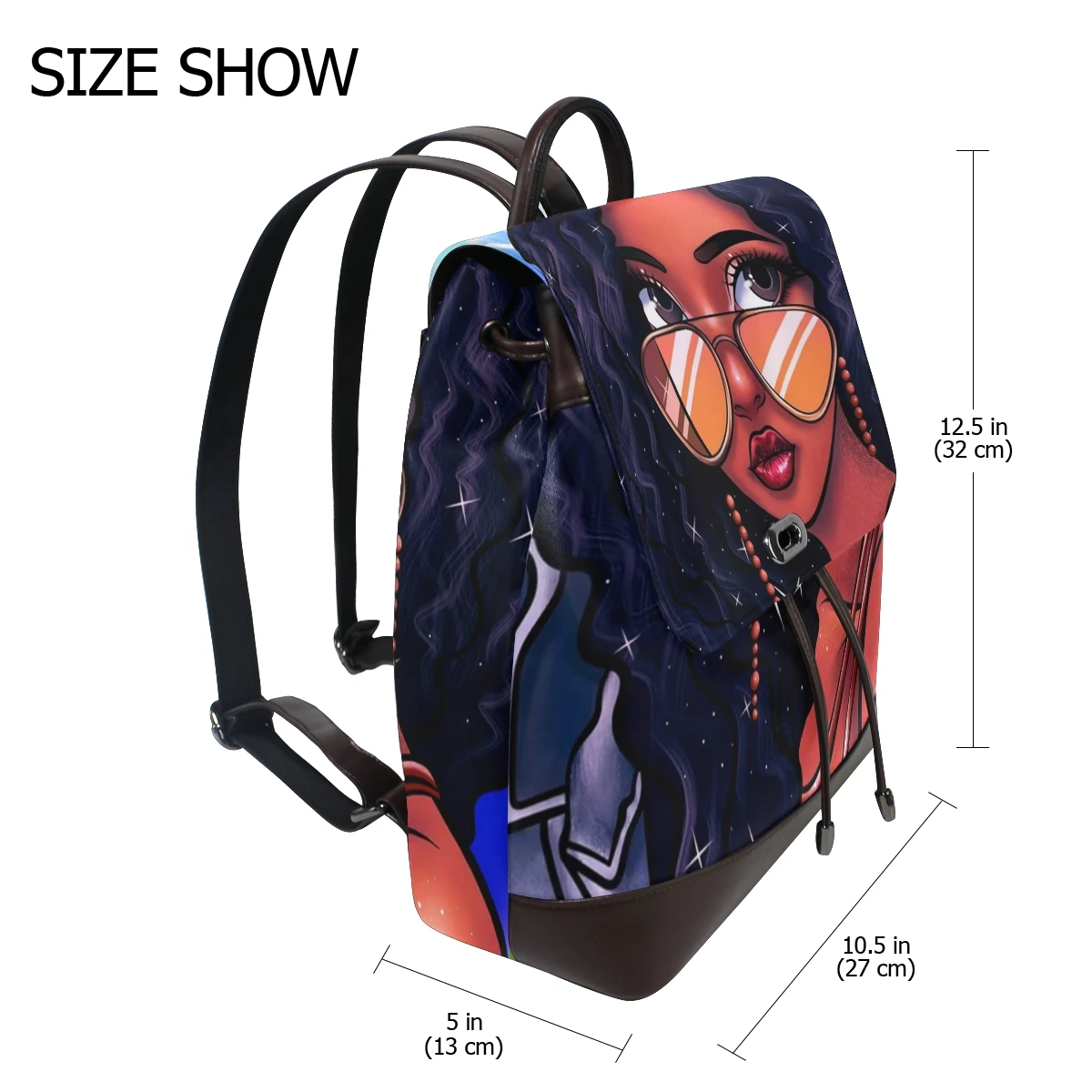 Кожаные рюкзаки, за исключением нижней части и плечевых ремней, не стираются в машине Материал: из искусственной кожи Размеры: 10,5x5x12,5 дюйма (длина, ширина и высота) Один основной карман, один карман на молнии, два накладных кармана, один задний карман на молнии Модный кожаный рюкзак с принтом, подходит для многих случаев, легко носить с собой
