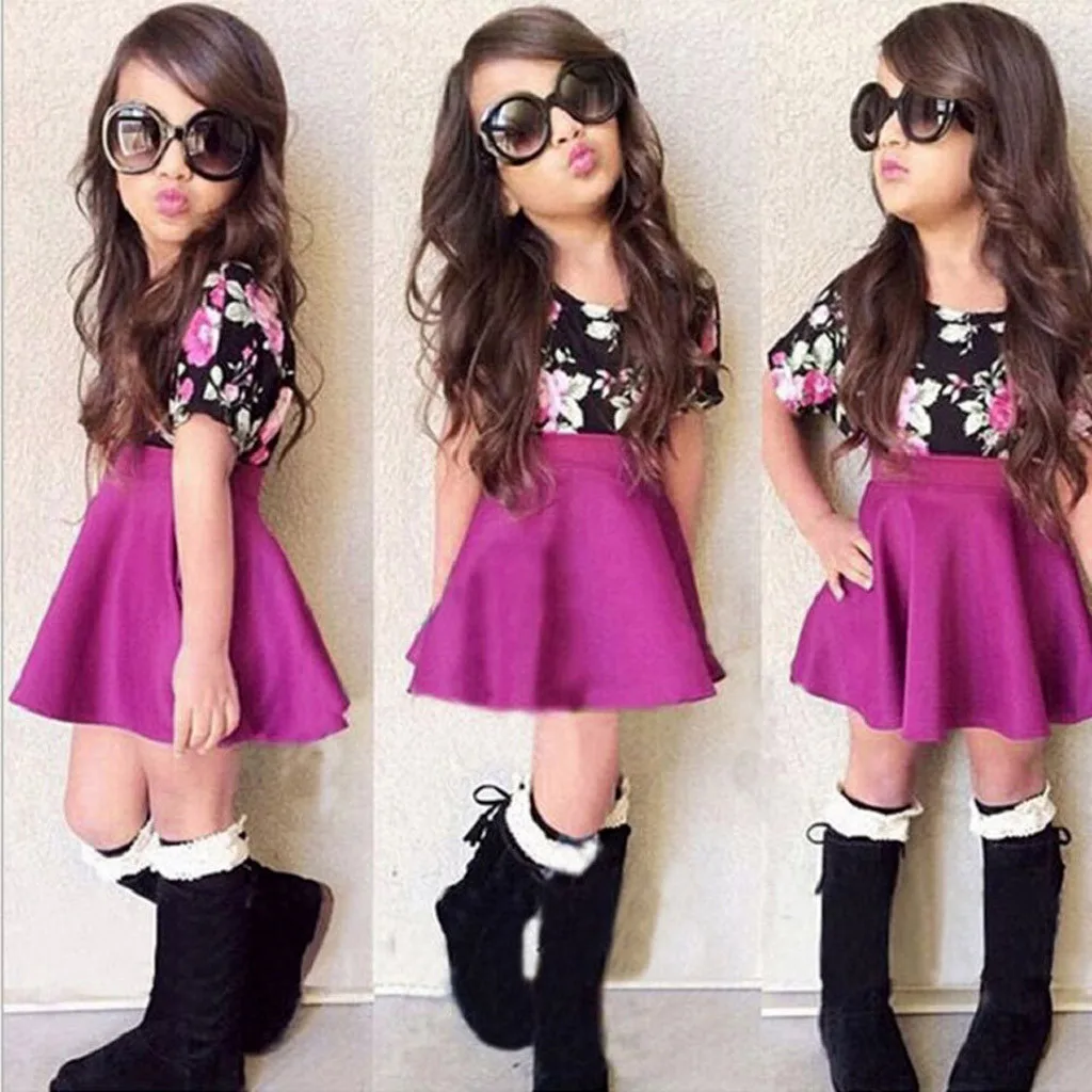 Модный детский комплект одежды для маленьких девочек, летний топ с цветочным принтом + Однотонная юбка-пачка, комплект одежды для 12 мес.-4 лет