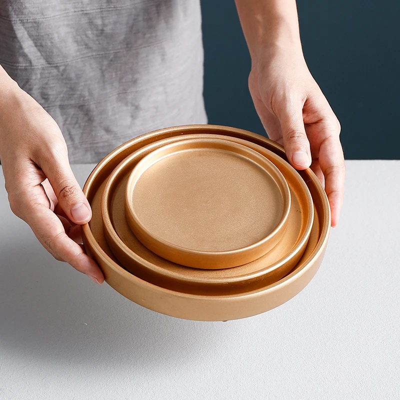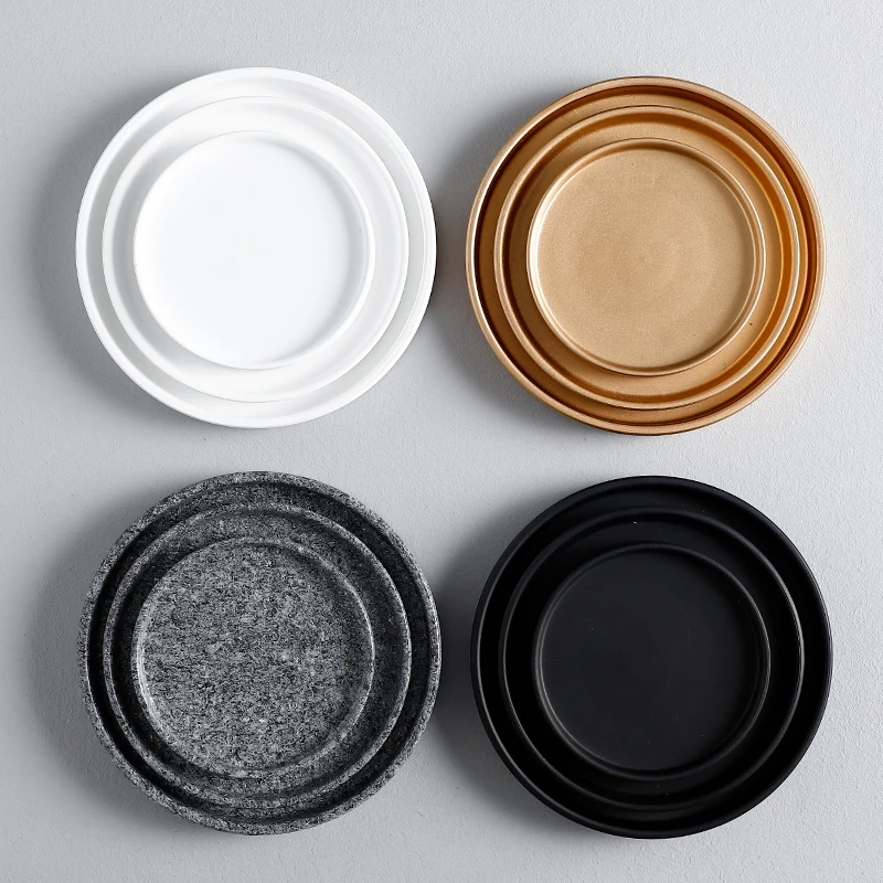 Ваза для цветов, подставка для горшка, поднос для сервировки, керамический поднос для еды, золотой, черный, белый, украшение