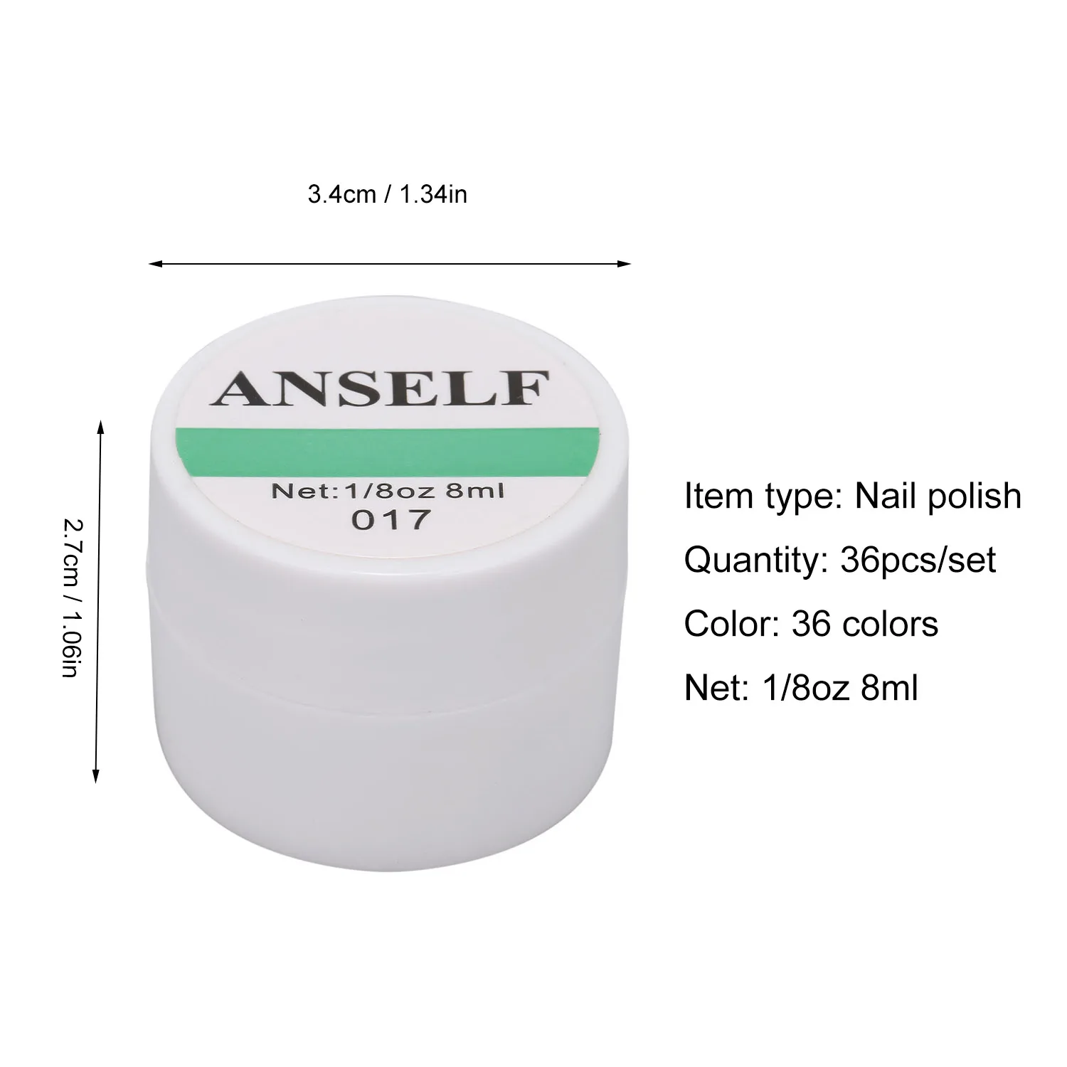 Этот Гель-лак для ногтей имеет 36 цветов, 8 мл * 36, он очень удобен в использовании, разные цвета можно выбрать, подходит для различных случаев, станет хорошим спутником для ваших ногтей. С одной щеткой для ногтей.