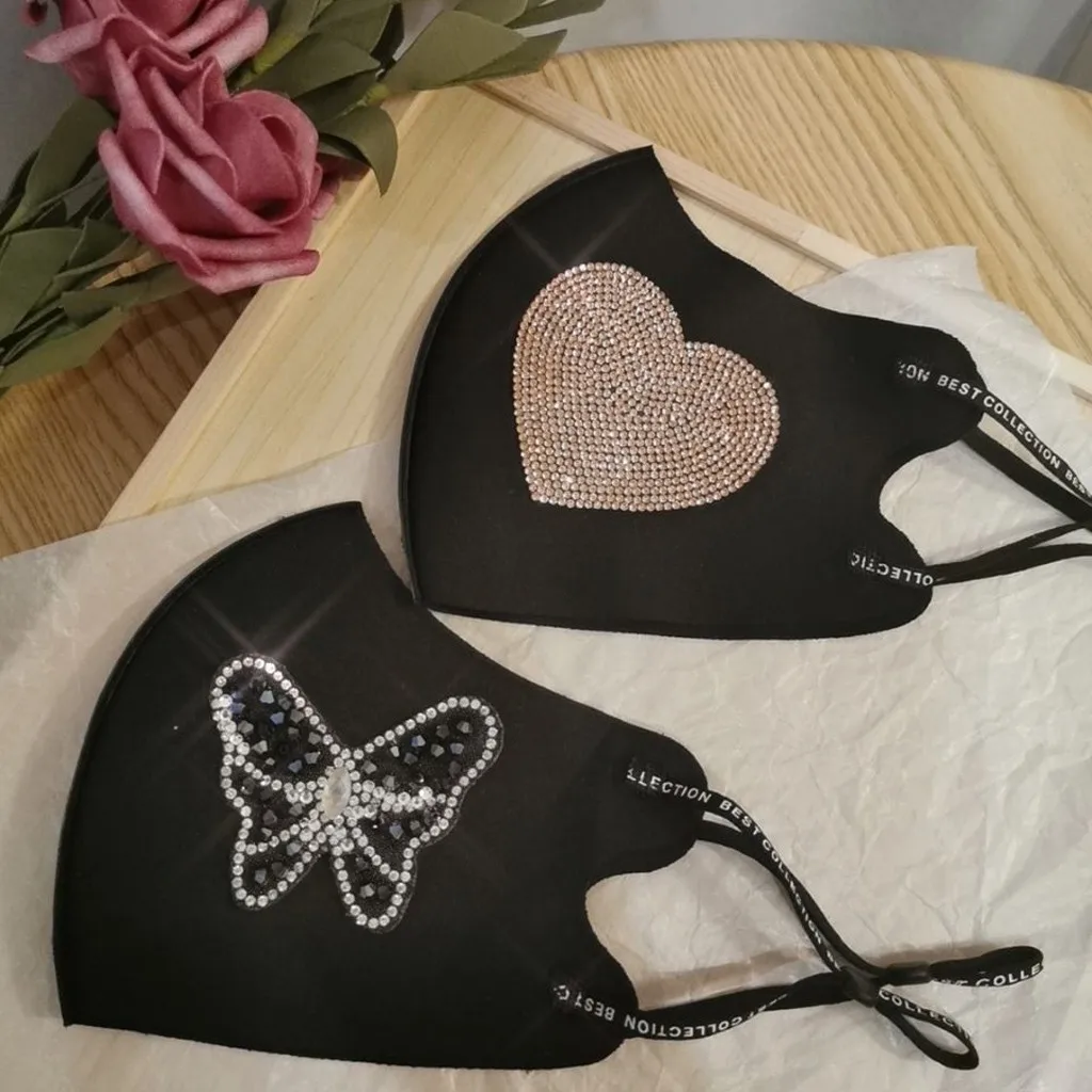 Взрослая Модная хлопковая маска с изображением персикового сердца бабочки со стразами