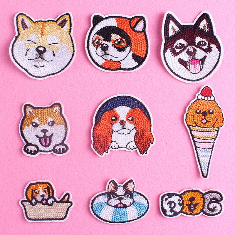 Милые нашивки с вышивкой собаки для одежды, нашивки в полоску Тедди Хаски для одежды, наклейки с железными нашивками на одежде, аппликации с животными