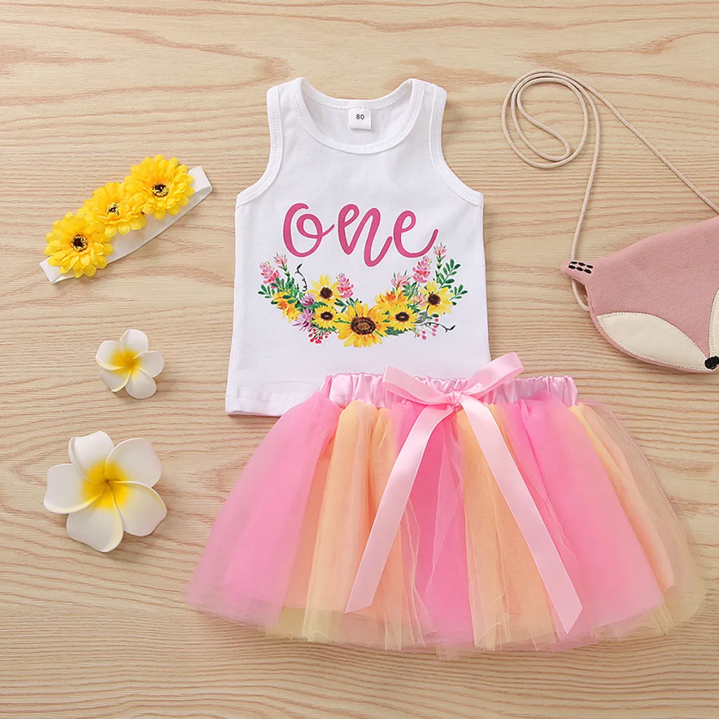 Лидер продаж; Комплект летней одежды для детей; Топы для новорожденных и маленьких девочек с изображением подсолнухов; Фатиновая юбка; Комплект одежды принцессы; 2020