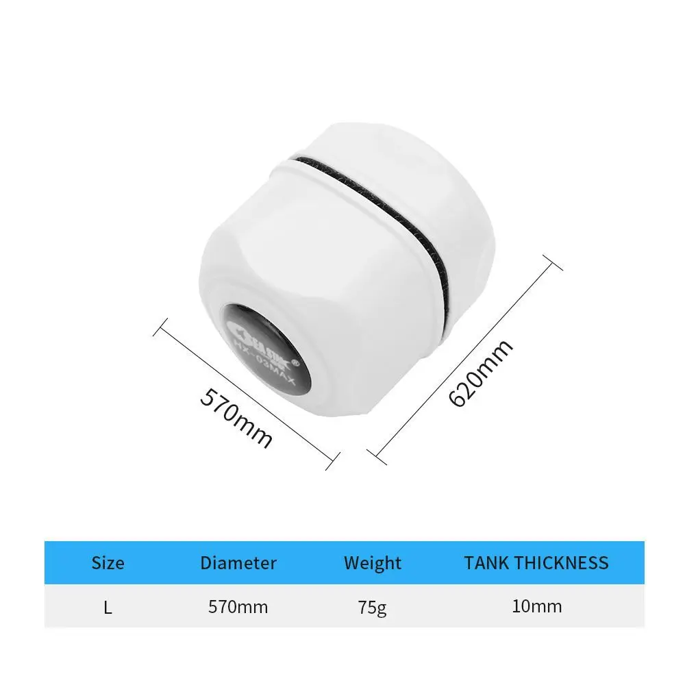 Особенности: хороший магнетизм, сильная сила всасывания, плавающий дизайн, красивая форма. Цвет: синий, белый, красный; Модель с полным весом размер упаковки Мин 55 г 11*7*4 см Средний 75 г 14*8*5 см Макс 75 г 14*8*5,5 см Примечание: 1. Людям с кардиостимулятором не разрешается приближаться; 2. Хранить в недоступном для детей месте; 3. Акриловый Пластиковый Кристалл и ультрабелый аквариум не используют этот продукт;