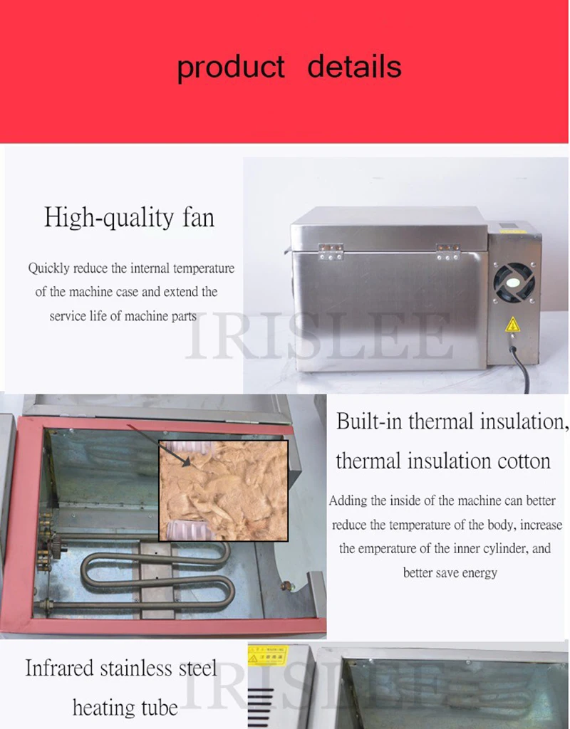1. Принимает медный провод двигателя, с низким уровнем шума и долгим сроком службы. 2. Использование горизонтального цилиндра, с равномерным нагревом, хорошим уплотнением и жареным эффектом. 3. Улучшенная структура, задняя крышка может быть открыта, так что техническое обслуживание и ремонт довольно удобны. 4. Внешний слой цилиндра принимает отличный асбеста в качестве теплоизолятора, поэтому теплоэффективность высоко отвечает температурным потребностям различных жареных продуктов. Жареная еда на вкус хорошая, и она может сэкономить энергию и время. 5. В процессе обжига сырье жарится вертикально в цилиндре без палки. Удобно быть вне горшка, только нажатием по часовой стрелке и обратным переключателем жареная еда может быть из горшка и сита и отделена без ручного разделения.