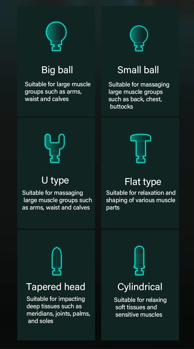 Глубоко хит мышц, болезненные ощущения, профессиональный массаж, длительное время работы от аккумулятора, супермощность, низким уровнем шума и тихий, изогнутые инженерных дизайнов тот, что