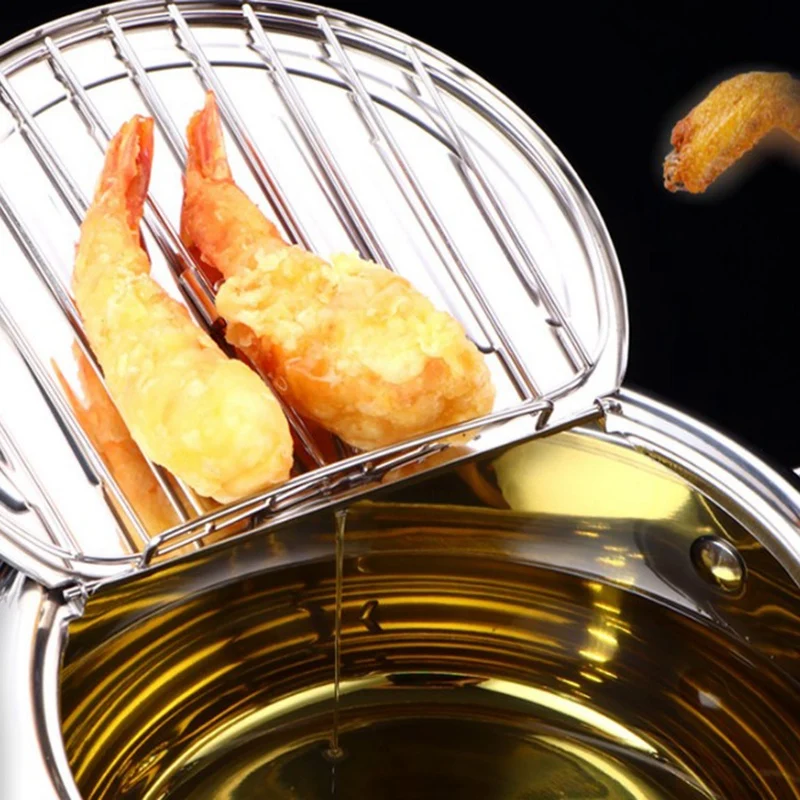 Крючок на проволочной корзине для легкого слива масла обратно в кастрюлю