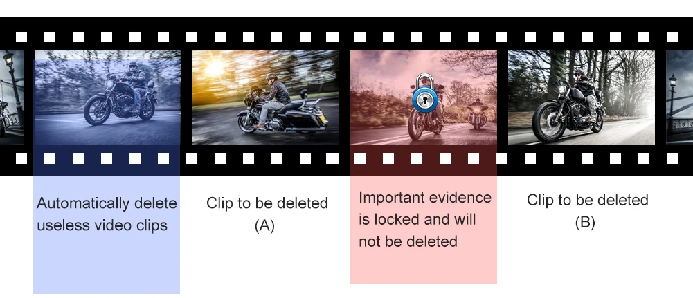 Самое главное в приборной панели камеры-это сохранение всех критических кадров для последующего просмотра. В то время как карта памяти имеет ограниченную емкость, мы разработали функцию циклической записи для перезаписи самого старого файла непрерывно, когда sd-карта заполнена, так что ваше устройство постоянно записывает, и вы никогда не потеряете самые последние кадры.