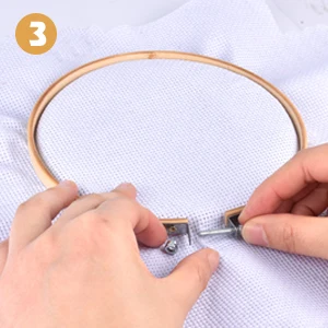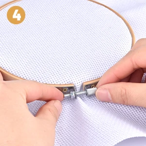 1. Ослабьте внешний винт, положите плоский Внутренний обруч, положите ткань на обруч, затем поместите внешний обруч на Внутренний обруч.