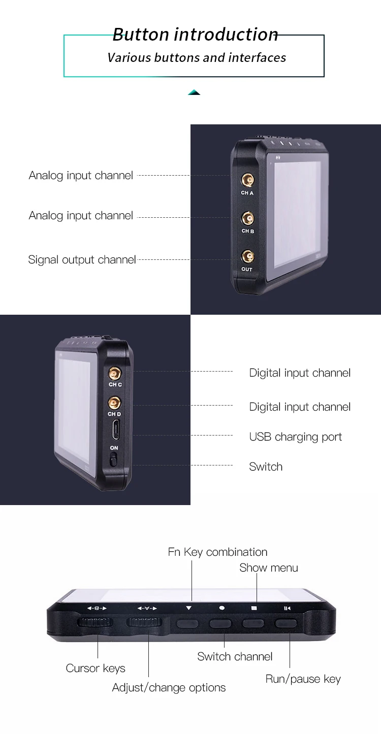 DS213-это цифровой запоминающий осциллограф с 5-трековым, 4-волновым кабелем для общего назначения, предназначенный для электронных инженерных задач, в основе которого лежит ядро ARM Cortex m3. В DS213 используется FPGA для управления внешним контролем ADC и режимом кэша данных. В нем предусмотрены 4 раздела приложений для загрузки и обновления до 4 различных прошивок приложений. Также в него встроен флеш-накопитель USB объемом 8 МБ для хранения сигналов и обновления прошивки системы. Приложение для кода осциллографа имеет открытый исходный код, и пользователи могут разработать прошивку осциллографа в соответствии со своими потребностями
