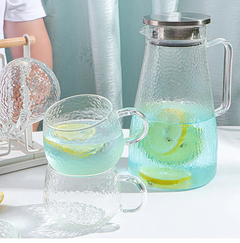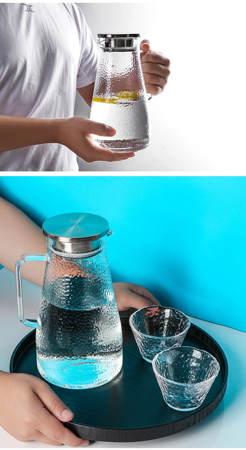 Стеклянный кувшин для воды, стеклянный кувшин, фруктовый сок, цветочный чай, графин для воды с ручкой, кувшин для горячей и холодной воды, кувшин для воды
