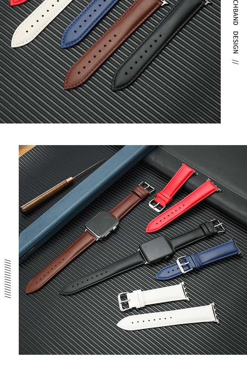 Название продукта: ремешок для часов Apple с пряжкой из нержавеющей стали Материал ремешка: телячья кожа. Блеск: матовый. Длина: около 125 мм с длинной стороны и 75 мм с короткой стороны. Размер: подходит для 38-40 мм, подходит для 42-44 мм. Тип ремешка: плоский прямой порт. Цвет ремешка: черный, коричневый, красный, синий, белый. Материал пряжки: нержавеющая сталь 304. Тип пряжки: пряжка. Цвет пряжки: серебристый. Мы подарим посылка. Посылка входит: Руководство по установке × 1 Инструмент для установки × 1 Пружинный шток × 4
