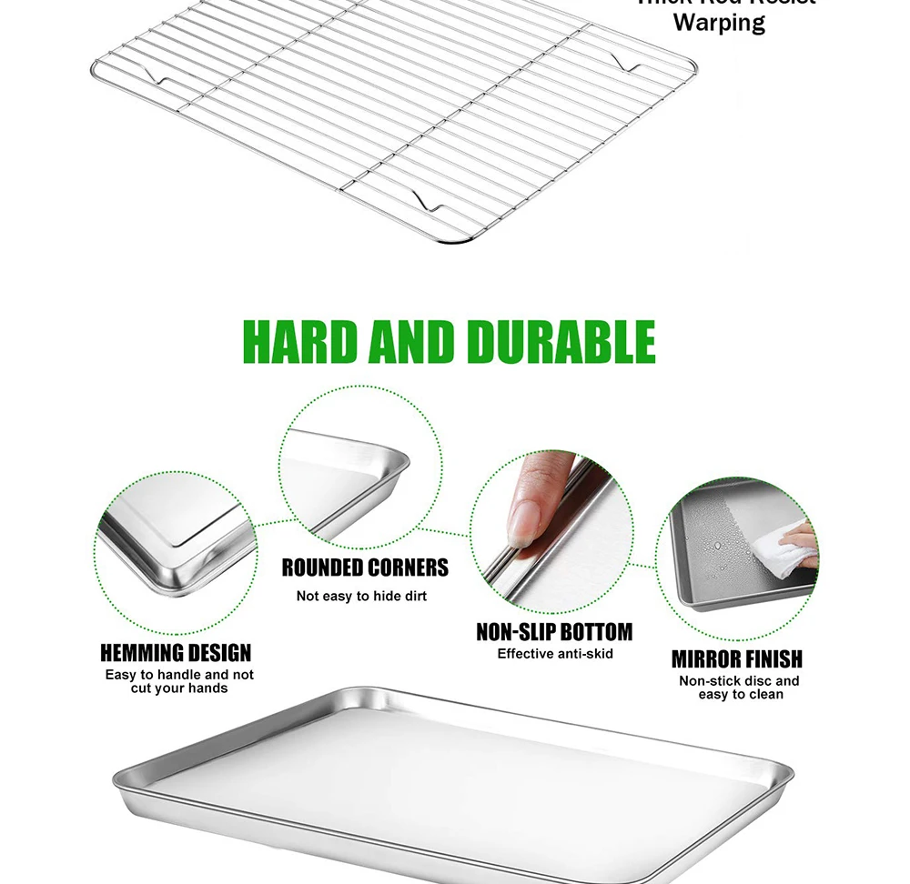 Не деформируется! Надоели хрупкие сковороды, которые деформируются и крутятся в духовке? Наконец, набор сковород и стеллажей из нержавеющей стали размером четверть, предназначенных для защиты от деформации.
