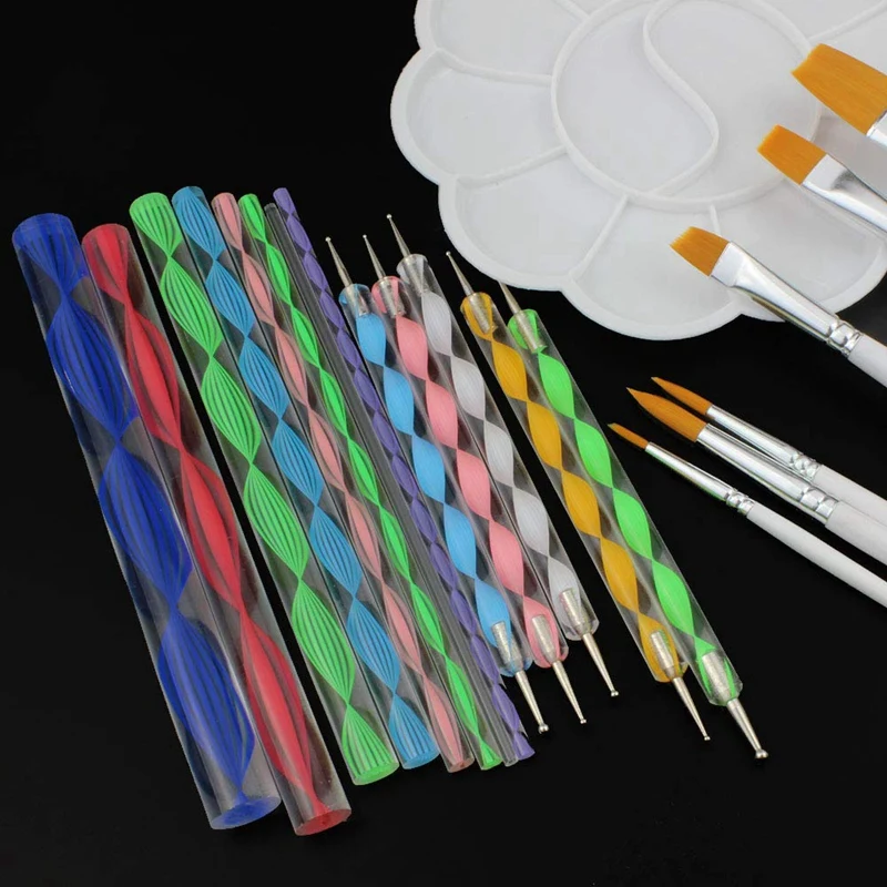 20 шт. Мандала инструменты для раскрашивания камня инструменты для рисования ногтей набор для художественных ремесел-8 х акриловых стержней, 5 х двухсторонних ручек для раскрашивания,