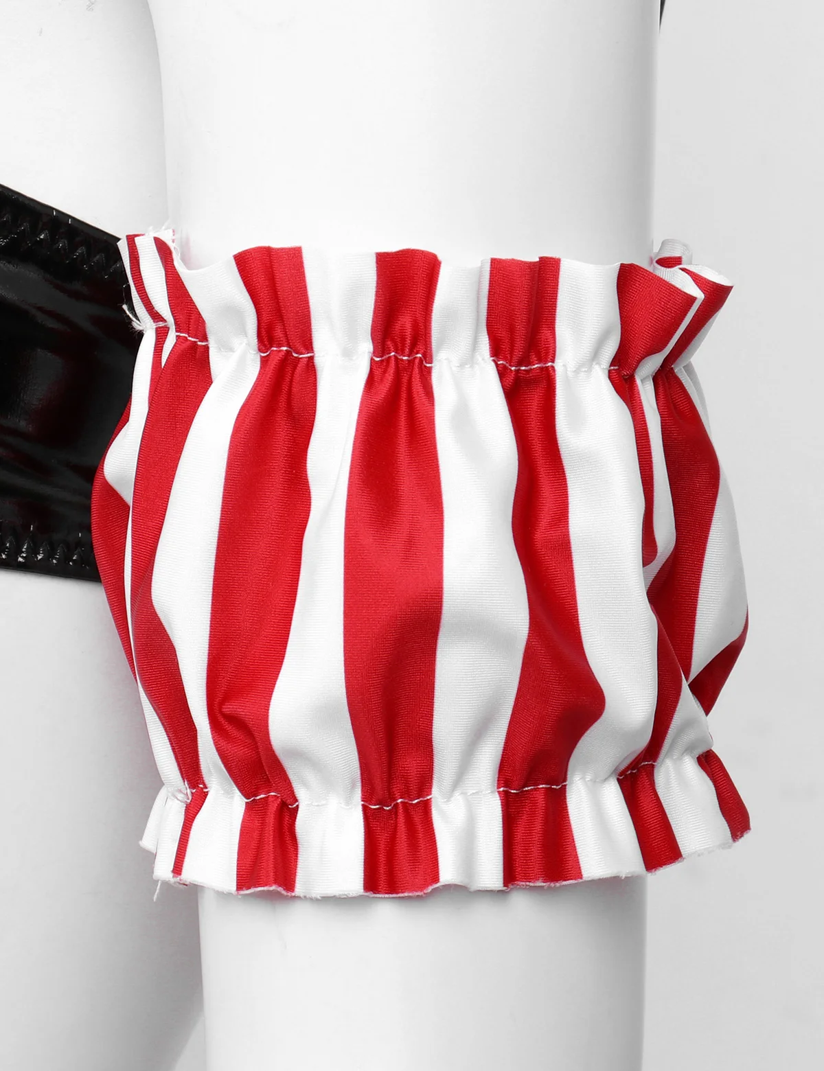 Пара трусов на молнии с полосатым поясом с завязками на талии и парой эластичных полосатых рукавов. Хорошая эластичная ткань, удобная в носке, гладкая на ощупь.