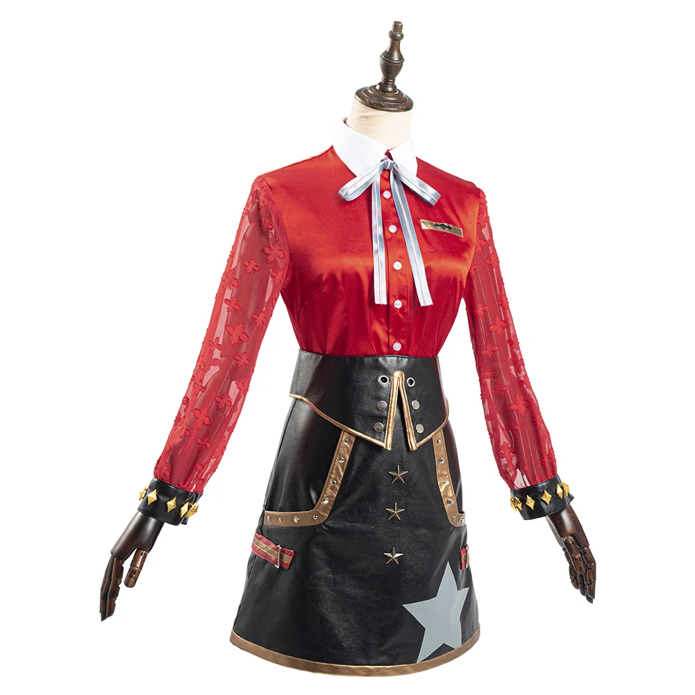 В комплект входит: пояс + ушные украшения * 2 + аксессуары для волос * 4 + шапка + галстук + рубашка + юбка