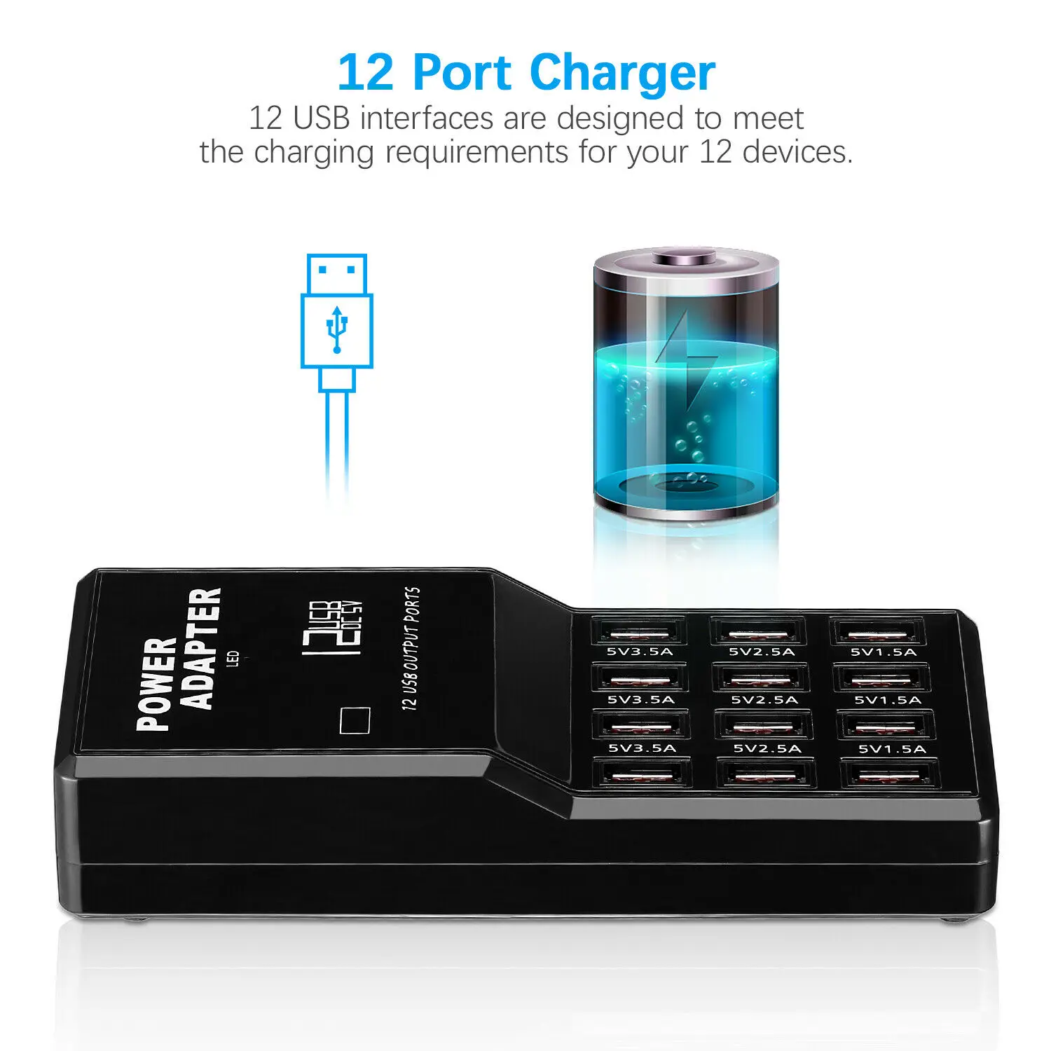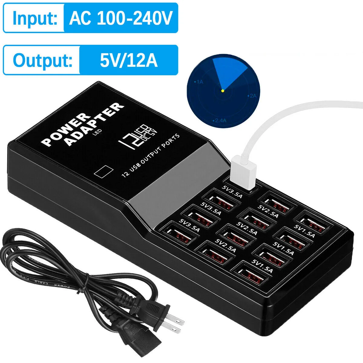 Особенности: 1. Совместимость: Супер Совместимость, может заряжать для iPad, для iPhone, для Samsung и других планшетных компьютеров с мобильными телефонами и другими брендами, может легко достичь быстрой зарядки 3.5A. 2. Удобный и практичный: нужно только подключить шнур питания переменного тока, может обеспечить электричество для адаптированного телефона, но и одновременно заряжать несколько мобильных телефонов. 3. Он также имеет специальный выключатель питания, который может выключить входной источник питания высокого напряжения. 4. Интеллектуальная Идентификация: использование цифровых продуктов для зарядки тока автоматическая интеллектуальная функция обнаружения для защиты вашего iPad, DV, мобильных телефонов, цифровых камер и т. д., значительно повышает безопасность и срок службы продуктов. 5. USB 1A-3.5A автоматически определяет выходную мощность. Интеллектуальный чип определяет перегрев, перегрузки по току, перегрузки, защиту от короткого замыкания и автоматически восстанавливает до тех пор, пока нагрузка не будет нормальной для обеспечения безопасности в использовании. 6. Зеленая защита окружающей среды: сильная совместимость и избегайте использования нескольких зарядных устройств. 7. Использование AC К USB зарядному разъему может удовлетворить зарядку USB Дата-кабеля. 8. Подходит для: смартфонов, всех видов планшетных компьютеров, аудио Bluetooth, мобильных устройств, DV, автомобильных Bluetooth hands-free car kit, цифровых камер, MP3, MP4 и другие 5V USB выход цифровой продукции оборудования. Спецификация: Модель: USB-858 Тип вилки: ЕС, США Номинальное напряжение: 100 В ~ 240 В переменного тока Выход: 5,0 V 12A Длина провода: 1,2 м Количество разъемов: 12 шт. Материал корпуса: огнеупорные огнеупоры Размер: 171*75*35 мм/6,73*2,95*1,37'' Посылка: 1x12 портов USB зарядное устройство 1 х Кабель питания