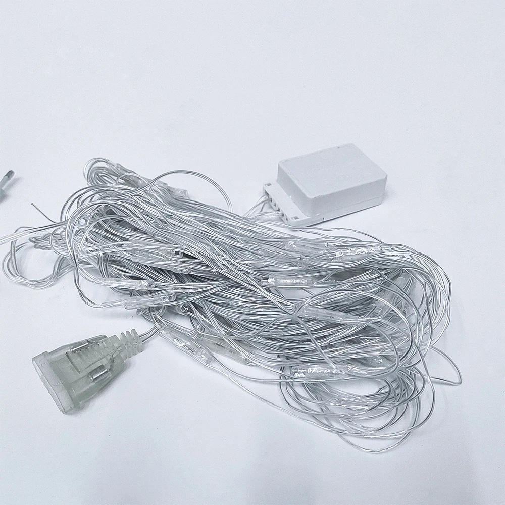 С RGB цветом, 72 светодиодный, размер 1,5x1,5 М. Форма сетки, прозрачная линия, подходит для штор и так далее. 8 модель
