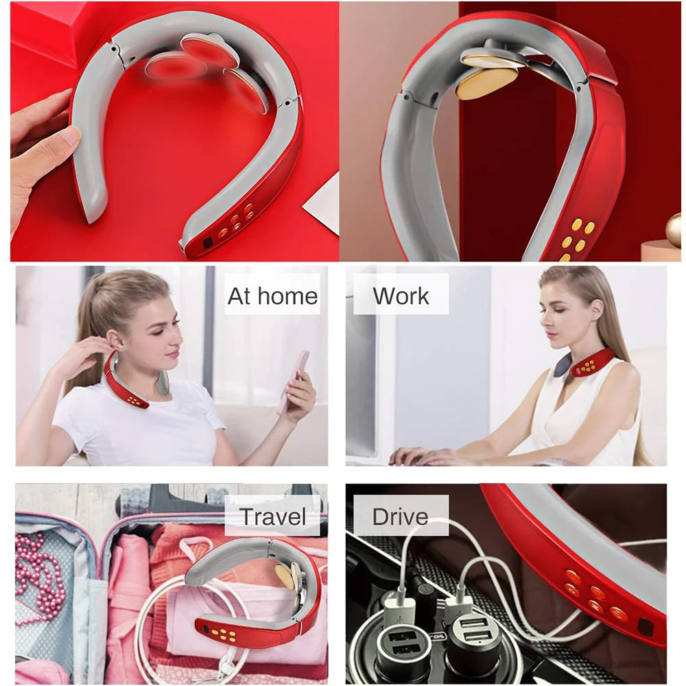 【Передовые технологии физиотерапии 】-Этот массажер для шеи использует технологию десятков низкочастотных импульсов для переноса в глубокие ткани, имитируя различные методы массажа, расслабляя мышцы шеи и улучшая кровообращение. Это здоровый партнер для вашей шеи. 【Несколько режимов-Электрический массажер для шеи накапливается с 4 режимами импульса, 15 настройками интенсивности. Вы можете настроить на наиболее удобное состояние самостоятельно 【Timed Design】-курс лечения длится 15 минут, и автоматически отключается после времени прибытия; Это подходящее время, после этого, мы рекомендуем вам провести надлежащую активность на шее некоторое время. 【Беспроводной портативный дизайн 】-в соответствии с дизайном человеческой инженерии, этот эстетический и научный продукт соответствует кривой шеи. Этот беспроводной массажер для шеи с регулируемой высокой эластичностью подходит для любого размера шеи. Это портативный дизайн и легкий, отлично подходит для дома, офиса и автомобиля. 【Примечание. Массажер использует низкочастотную импульсную терапию. Электрический шок может возникнуть во время первого использования, что является нормальным. Пожалуйста, внимательно прочитайте инструкции перед использованием. Примечание: Перед использованием обязательно накройте шею влажным полотенцем. Сухая кожа влияет на эффективность продукта.
