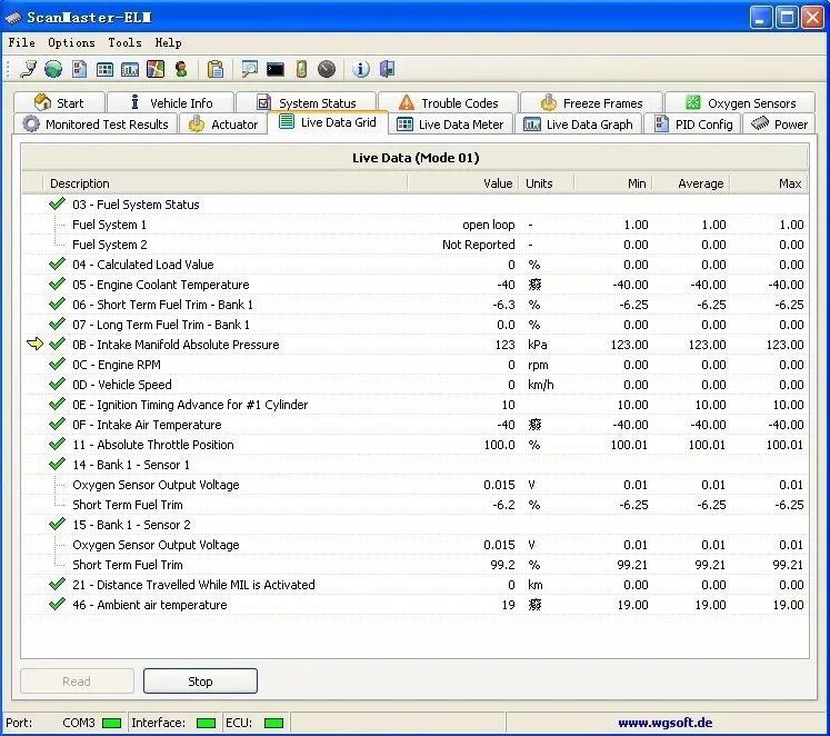 * Отображение рабочих характеристик автомобиля в режиме реального времени, таких как импульс, скорость транспортного средства, давление масла, температура охлаждающей жидкости, нагрузка двигателя, давление впускного коллектора, положение дроссельной заслонки, значения кислородных датчиков, воздухозаборника