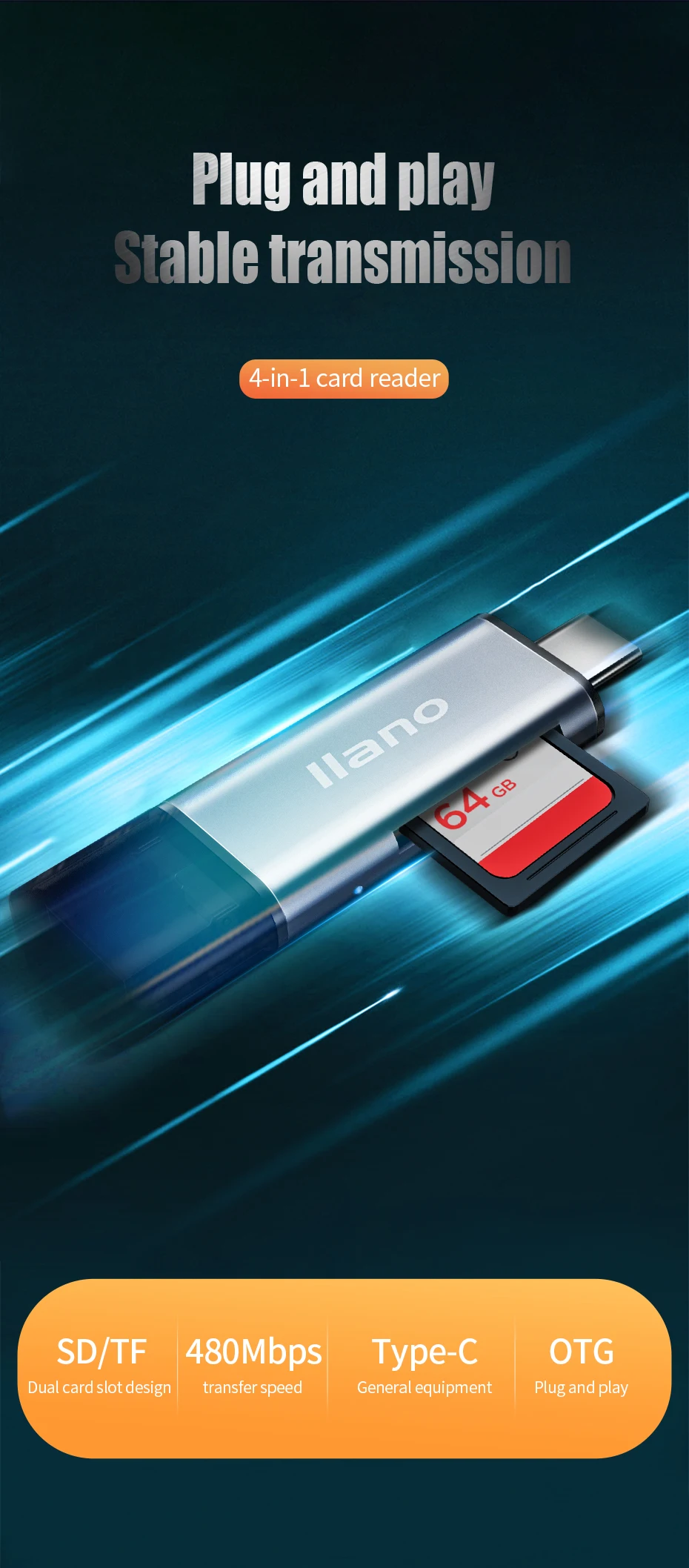 LLANO Горячая USB 2,0 SD кард-ридер TF/Micro SD/Micro USB/Type C смарт-кард-ридер типа C OTG флеш-накопитель кардридер адаптер