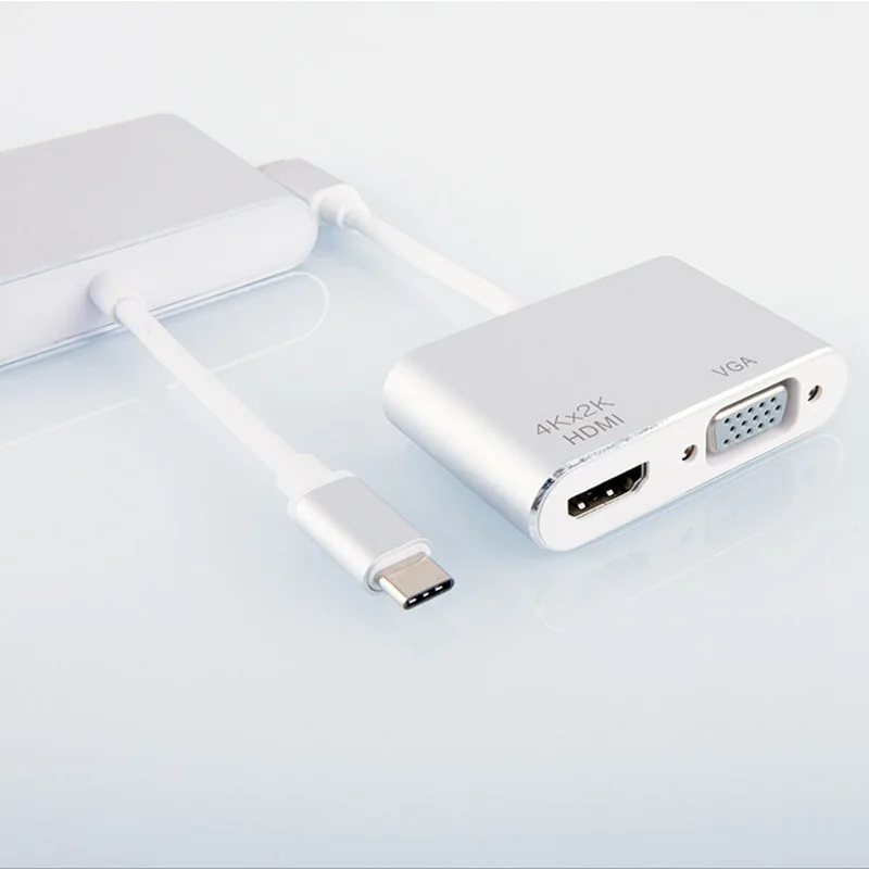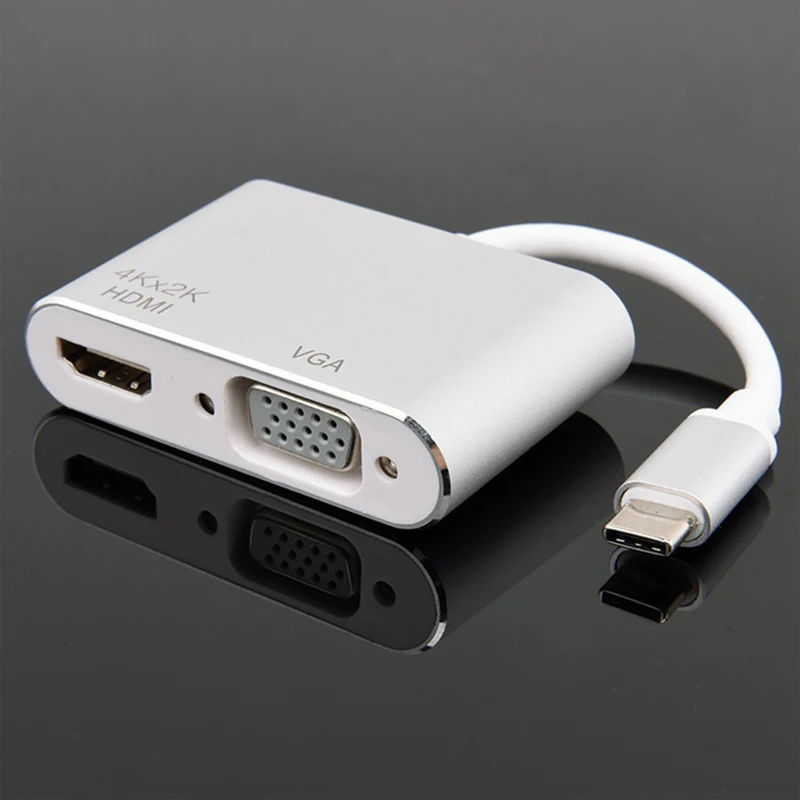 2-в-1. Этот многопортовый Адаптер преобразует ваш порт type-C в 1 выход HDMI, 1 выход VGA. Заменяет потребность в нескольких адаптерах.