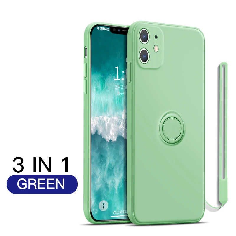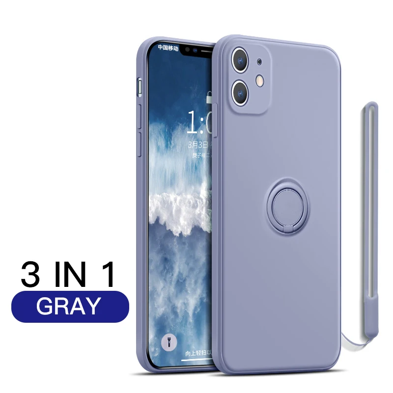 LOVECOM квадратный сплошной цвет жидкий силиконовый чехол с кольцом-держателем для iPhone 12 Pro Max 11 Pro Max XR X XS Max 7 8 мягкий чехол
