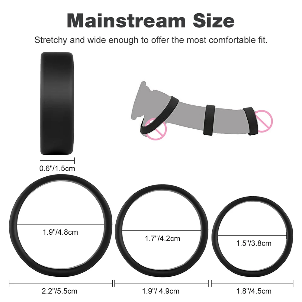 Набор колец для пениса поставляется с тремя размерами колец для пениса маленький: 1,5 дюйма средний: 1,7 дюйма большой: 1,9 дюйма