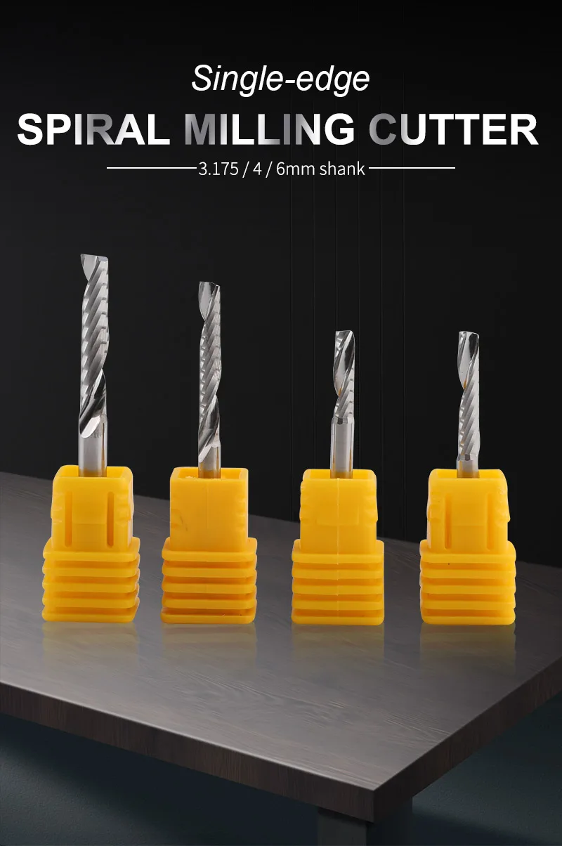Твердосплавный фрезерный станок с ЧПУ, односторонний спиральный резак, 1 лезвие, спиральный резак для ПВХ