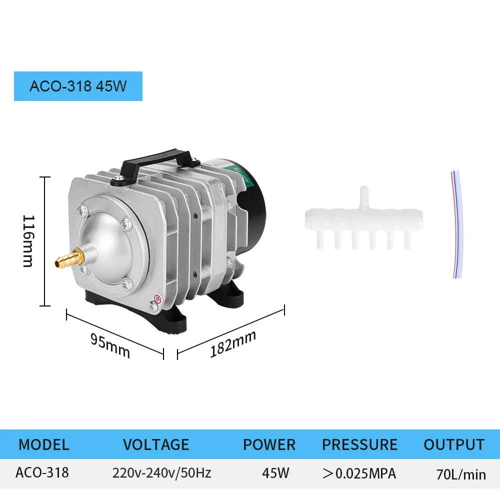 Используя электромагнитный двигатель, поршневое возвратно-поступательное движение по прямой линии для производства воздушного потока, механизм более разумный; Цилиндр и поршень изготовлены из нового износостойкого материала SF3, который отличается низким энергопотреблением, большим смещением воздуха и повышенным давлением воздуха. Безмасляная конструкция смазки, сжатый воздух более чистый;