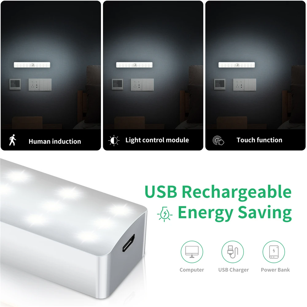 Размер: 188*28*18 мм Вес изделия: 165 г 1. Метод индукции: Инфракрасная индукция человеческого тела 2. Индукционное управление: Встроенный светильник-датчик (может установить постоянный светильник и режим индукции) 3. Индукционное расстояние: >3 м 4. Количество СВЕТОДИОДНЫЙ: 30 шт. 5. Угол индукции: 120 градусов 6. Светодиодный срок службы: более 80000 часов 7. Светодиодный индикатор яркости: 350 люмен 8. Светильник: холодный светильник, теплый светильник 9. Рабочий ток: 120 мА (белый светильник 60 мА, теплый светильник 60 мА) 10. Рабочее напряжение: DC3.7V 11. Литиевая батарея: 800 мА · ч (батареи продукта, достаточно) 12. Использование батареи: Зарядка до 500 раз 13. Количество раз, когда аккумулятор полностью заряжен: более 600 раз 14. Время задержки: 15 секунд 15. Рабочая температура лампы: -10 ~ 50 ℃ 16. Размер изделия: длина 188мм X Ширина 28мм x Толщина 18 мм 17. Список аксессуаров: usb-кабель для передачи данных, руководство пользователя на английском языке.