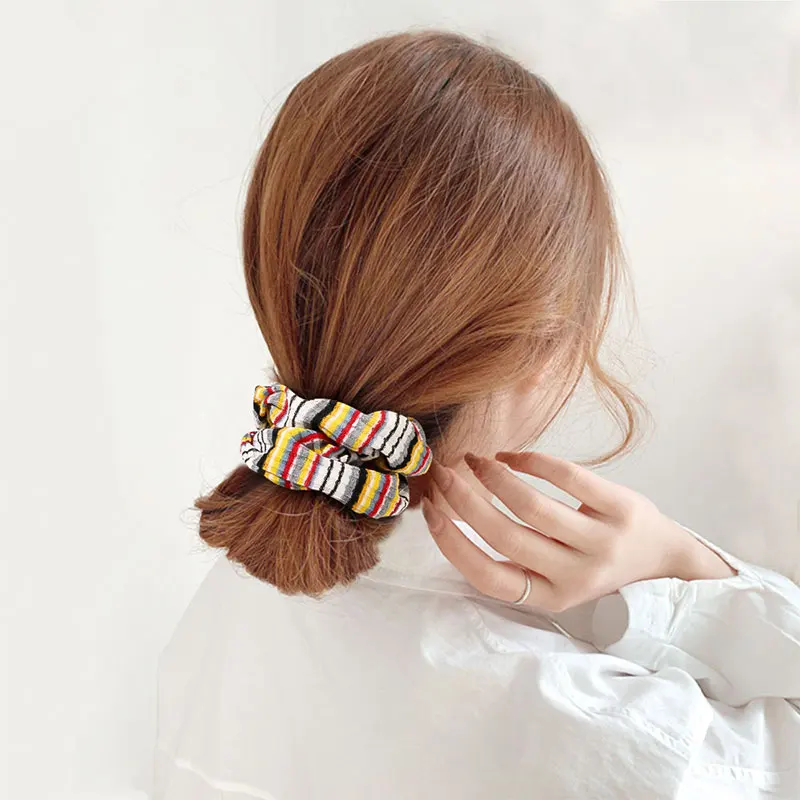 Резинки для волос, аксессуары для волос, вязанные полосатые резинки для волос, мягкие винтажные резинки для волос, яркие цвета радуги