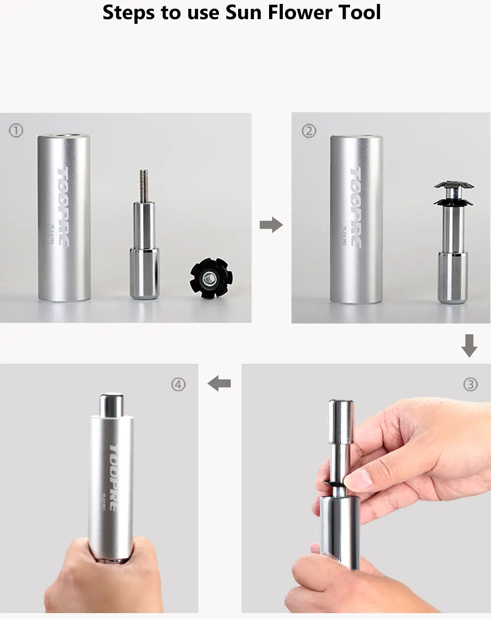 Бренд: TOOPRE Наименование: передняя вилка, инструмент для вождения от солнца и цветов Материал: инструментальная сталь + алюминиевый сплав Размер: рукав (длина 10,8 см, диаметр 3,5 см), Длина цветочного стержня 6,5 см, специальная длина винта 3 см Вес нетто: 255 г Применимо: передняя вилка внешнего диаметра 28,6 мм в верхней части (передняя вилка из алюминиевого сплава, стали, титанового сплава), полностью углеродная вилка не применима. Характеристики: жесткая обработка с подогревом, полированное никелирование, трехмерная пескоструйная обработка, хорошее ощущение рук, отсутствие проскальзывания, специальная конструкция для специального винта из нержавеющей стали 304. Основной рукав + цветочный стержень + специальный винт + Солнечный цветок