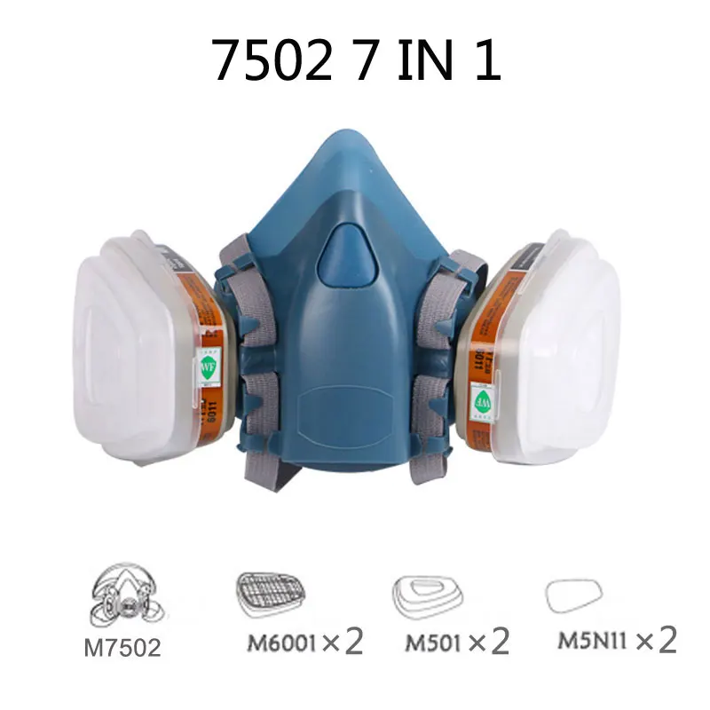 7 в 1 3 м 7502 6001 противогаз военный яд респиратор Полулицо широко используется маска Химическая краска спрей защита от пестицидов Многоразовый респиратор 3 м 7502 полулицевой части обеспечивает универсальность для многих сред и приложений, обеспечивая защиту от твердых частиц и широкого спектра газов и паров при использовании с утвержденными картриджами и фильтрами. Полумаска 3 м 7502-средний размер Обеспечивает плотное прилегание к любому типу и размеру. Система крепления двух эластичных резиновых ремней на хлопке и повязка на голову регулируется в четырех точках. Подложка не вызывает аллергии, мягкая и плотно прилегающая к лицу полоски. Удобный дизайн обеспечивает хороший обзор, Совместимость с защитой глаз и очками на голове, шлемами. 7 в 1 Костюм включает: 1x3 м 7502 маска для лица 2 x 3M 6001CN картридж (органический пар, покраска защитный) 2 х 3 м 5N11 сажевый хлопковый фильтр 2x3M 501 Фильтр-контейнер