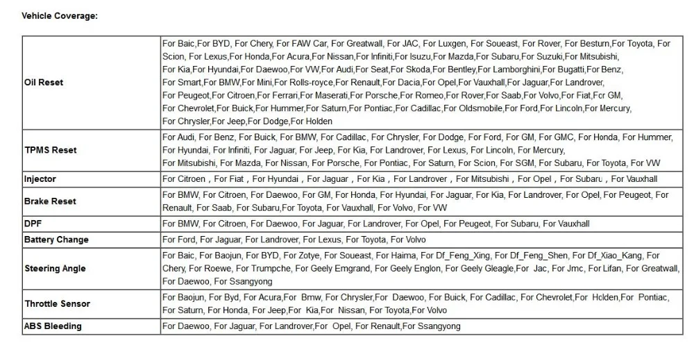 2. Многие техники без ума от специальных функций, таких как SAS, DPF, извините, что K1 PRO предоставляет только ограниченную модель автомобиля, которая поддерживает, см. Часть 2 о специальных функциях.