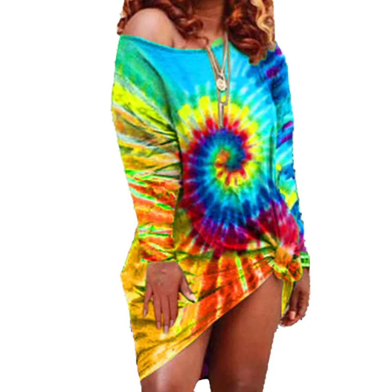 Новинка 2020, хит продаж, женское платье Sunmer, модное платье с длинным рукавом и градиентным принтом, платье с блестками One Plus Buds