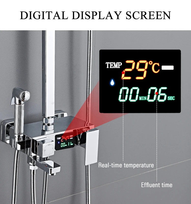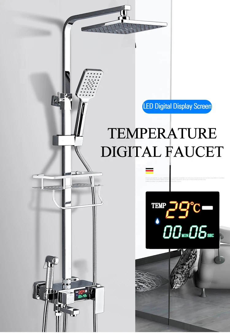 Conjunto Ducha настенный черный набор для душа, латунный цифровой дисплей, смеситель для душа, кран, термостатическая ручка, распылитель, смесители для ванной комнаты
