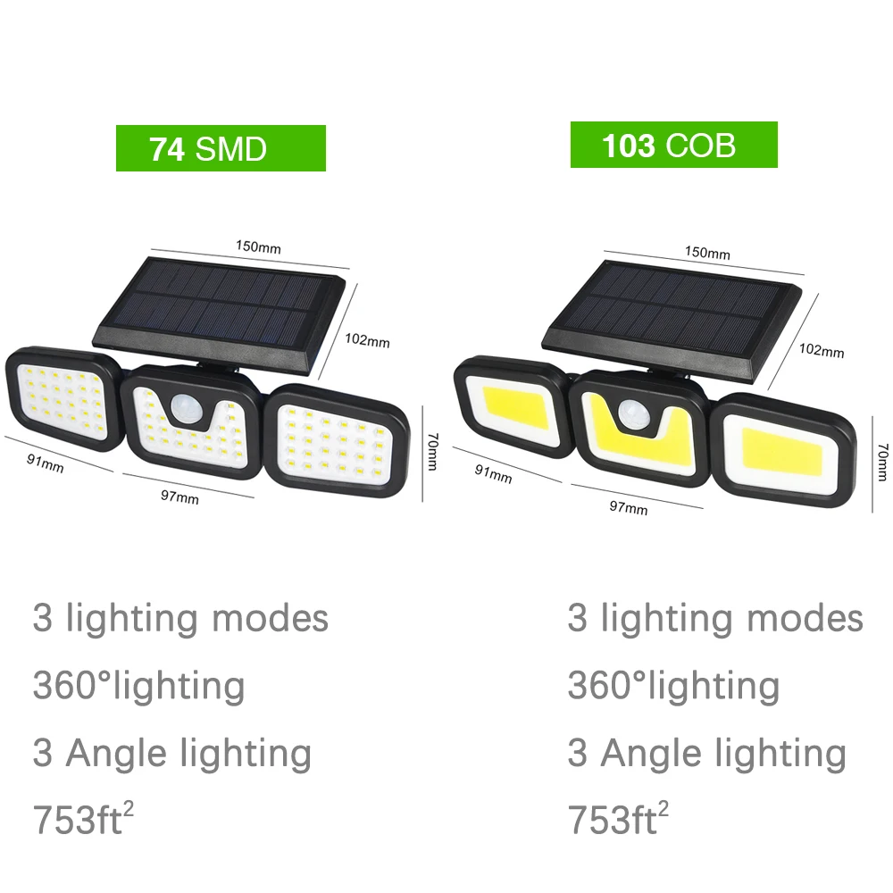 Супер яркие солнечные огни: солнечные огни на открытом воздухе, оснащенные супер яркими светодиодными или COB бусинами, солнечные световые огни движения на открытом воздухе обеспечивают превосходное освещение.